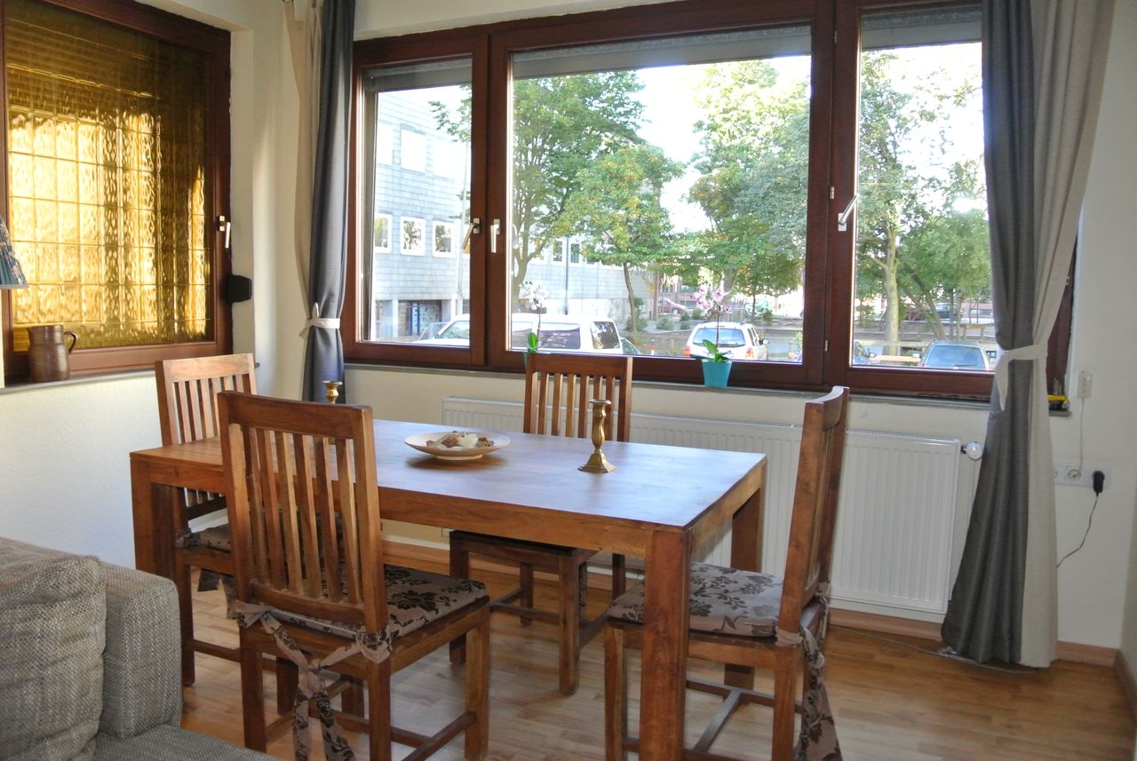 Nice and quiet 3-room apartment with balcony in the district Bremen-Findorff. The house is from the sixties and was extensively modernized in 2008. The apartment is on the ground floor. It is not completely barrier-free, because the staircase from the outside over 7 steps is attainable. Wi-Fi and internet access are available free of charge. In the living room is a large TV (40 inches), the television via satellite and there are also many international channels to receive. (Astra / Hotbird). Fu...