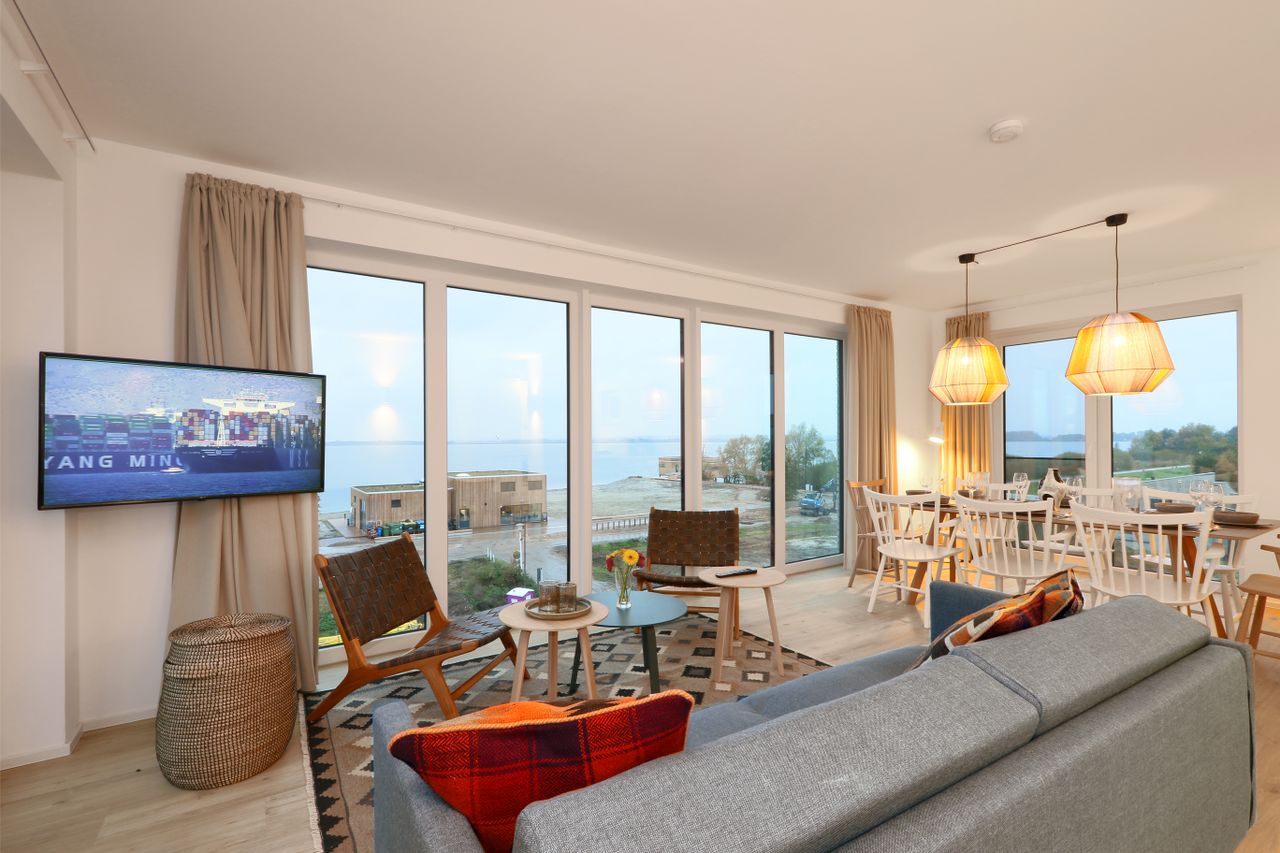 The apartment is nestled in the beautiful natural landscape right on the shore of Lake Dümmer. The heart of the park is the wide bathing beach and the lake sauna with a view of the water - a holiday mood is guaranteed here. The large and modernly furnished apartment offers 102m² of space for up to 8 people. A fully equipped kitchenette, a living and dining area with a great window front, two bathrooms (one with a shower, one with a bathtub), three bedrooms including a double bed and a spacious ...