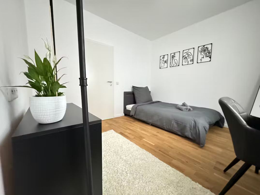 The Room A 15sqm room with plenty of natural light and a little touch of art to feel comfortable. The bed measures 120cm. The workspace is oriented towards the outside with working desk. For your clothes, there's a clothes rack in an industrial style next to the dresser. The rooms comes also with a big mirror. The Apartment 110sqm, freshly renovated, charming and upscale. It is this kind of flat where you feel home at the first place. The modern bathroom comes with a bathtub, ample space and a ...