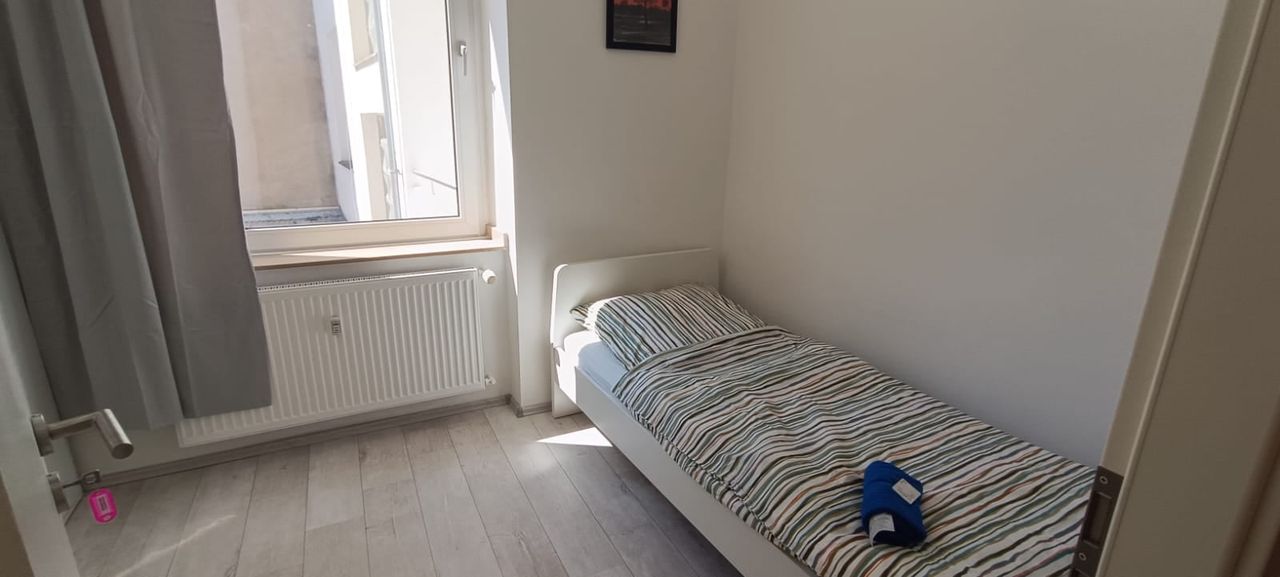 This well-equipped flatshare offers a comfortable and convenient living space. Flatshare Features: 10 fully furnished rooms with all essential furniture. Shared kitchen equipped with a fridge, oven, kettle, and kitchen utensils. 1 bathroom with shower shared among tenants. Coin-operated washing machine in the basement (€2 per wash). Located on the 1st floor with easy access. Location: Prime location in the pedestrian zone with numerous shopping options nearby. Excellent public transport connec...