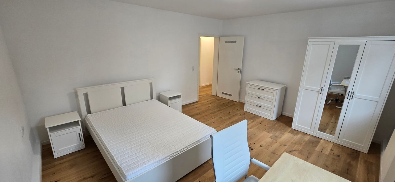 This bright, modernly furnished room is located in a well-maintained three-room shared apartment at Duisburgerstraße 26 in Stuttgart-Bad Cannstatt. The room is approximately 20 square meters and fully furnished with a bed, desk, chair, wardrobe, and shelving unit. Thanks to the large window, the room is bright and airy. The apartment features a fully equipped kitchen with a refrigerator, stove, oven, and all essential kitchen utensils. The bathroom is modernly tiled and shared. A washer-dryer i...