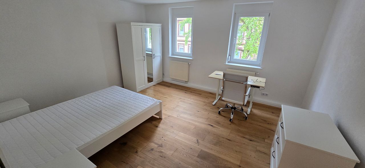 This bright, modernly furnished room is located in a well-maintained three-room shared apartment at Duisburgerstraße 26 in Stuttgart-Bad Cannstatt. The room is approximately 21 square meters and fully furnished with a bed, desk, chair, wardrobe, and shelving unit. Thanks to the large window, the room is bright and airy. The apartment features a fully equipped kitchen with a refrigerator, stove, oven, and all essential kitchen utensils. The bathroom is modernly tiled and shared. A washer-dryer is...