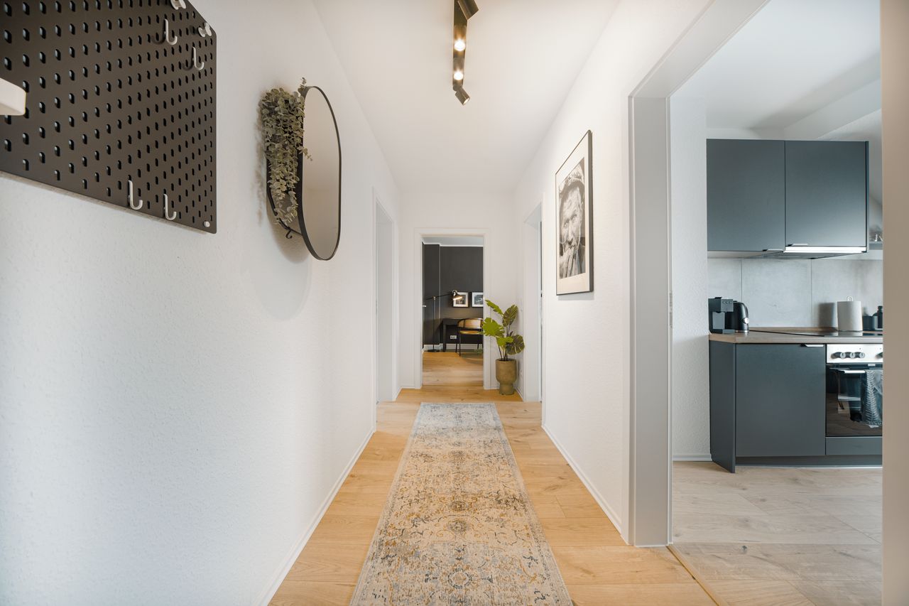 We are pleased to present this beautiful and cozy furnished 100 m2 apartment in the popular Berliner Straße 141 in Essen. This apartment offers comfort and modern living in a prime location. The living room is the perfect place to relax after a long day. It is tastefully furnished and features comfortable sofas, a TV, and a dining area that provides space for leisurely meals. Large windows let in plenty of natural light and create a pleasant atmosphere. The kitchen is fully equipped and offers...