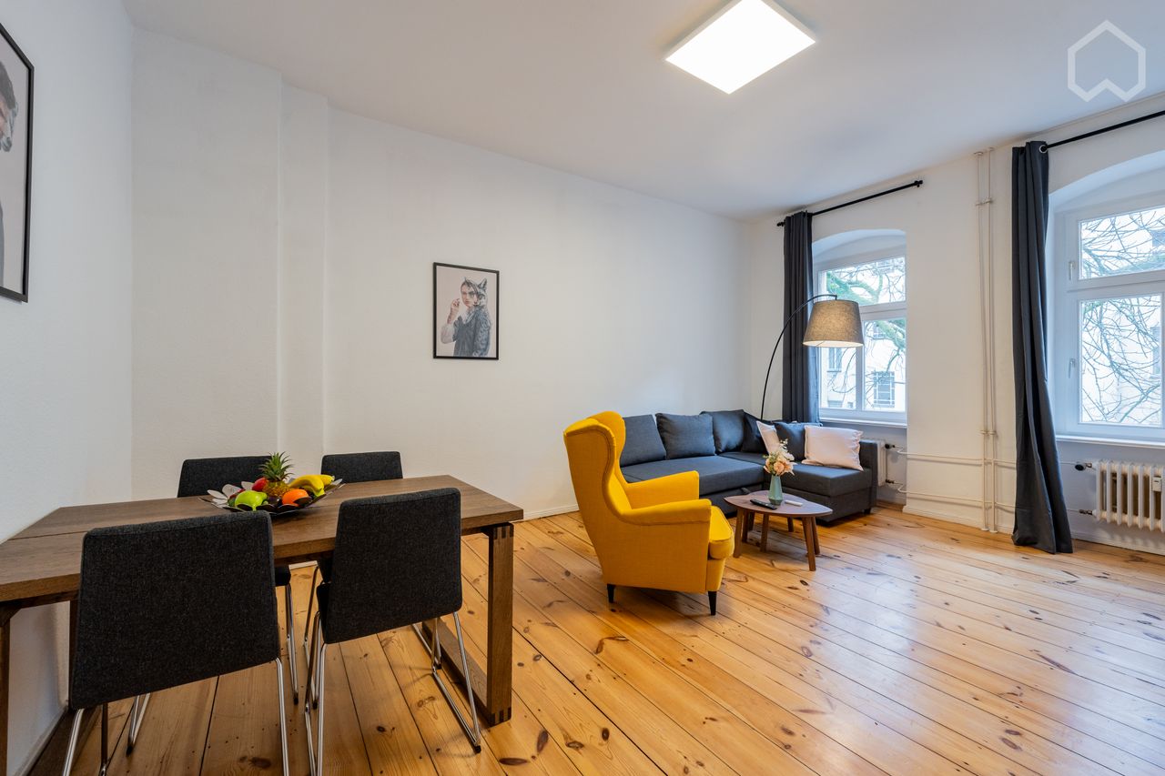 This apartment is located on the 2nd floor of the rear building of a typical Berlin old building in Nehringstr. . The apartment has a large living room with sofa bed, a bedroom with double bed, a kitchen with washing machine, dishwasher, large fridge-freezer and all equipment. The apartment is located in the immediate vicinity of Charlottenburg Palace. All stores for daily needs, as well as doctors and schools are in the immediate vicinity! The Westend S-Bahn station with the S1, S41, S42 and S4...