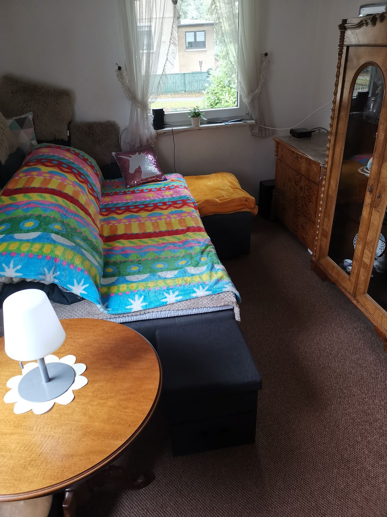 It is a 2-room flat with bathroom (shower) on the 1st floor. One room of it is available. The residential area is located in Berlin Pankow, surrounded by greenery. Garden use is possible.