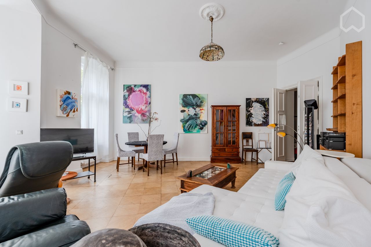 Welcome to your new home in Berlin’s vibrant Charlottenburg, right in the famous artists’ quarter! Just an 8-minute walk to U-Bahn Uhlandstraße and only 1 minute to Savignyplatz with excellent bus connections, this spacious 2-room apartment combines historic charm, urban lifestyle, and comfort. Apartment highlights: -96 m² of light-flooded living space with high ceilings and classic herringbone parquet floors -Huge, sunny living room with a cozy reading nook and artistic retro design -Large ...