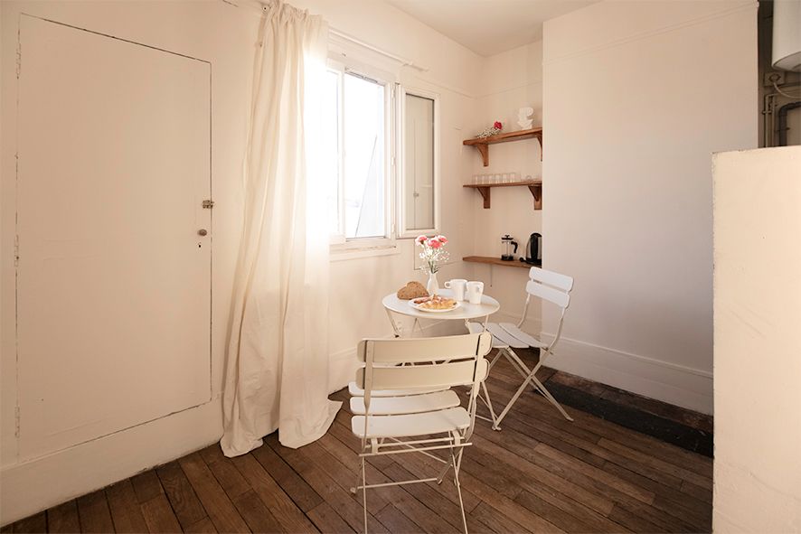 Le logement est calme et bénéficie d'une orientation sud-ouest, offrant une vue dégagée sans vis-à-vis. Il est situé au 6e étage, sans ascenseur, ce qui pourrait nécessiter un effort supplémentaire si vous avez des bagages lourds. L'immeuble est de style Haussmannien, et tous les appartements au 6e étage étaient traditionnellement réservés aux chambres de servantes. Ces chambres de bonne ont été converties en un appartement de deux pièces de 22 m2, comprenant une petite salle de bain et un coin ...