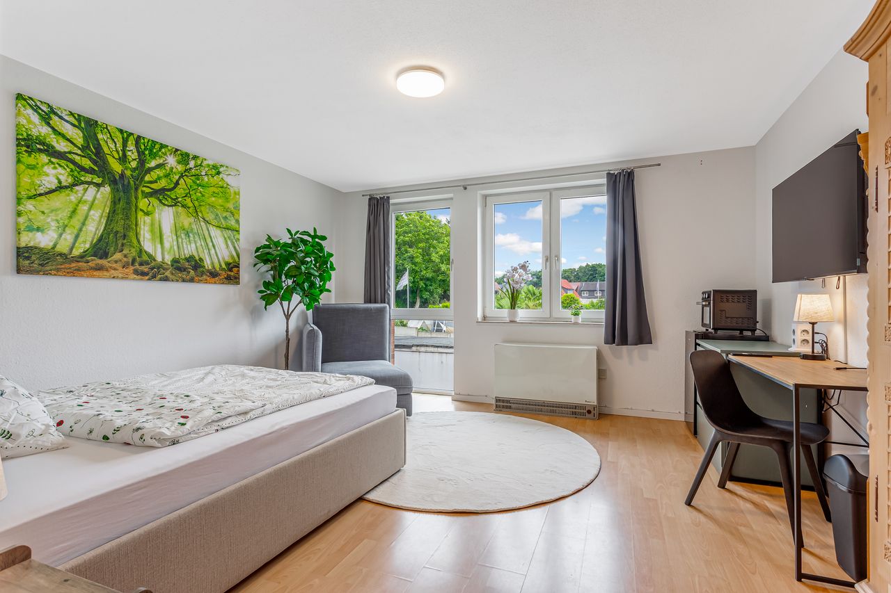 Modern Living in a Central Location – Stylish 1-Room Apartment on the 1st Floor This charming, light-filled apartment on the 1st floor impresses with modern design, a smart layout, and high living comfort across a compact 27m². Perfect for professionals, students, or commuters who want to live centrally yet peacefully. The bright living and sleeping area is tastefully furnished – featuring a comfortable couch, Smart TV, and a practical desk for working from home. A fast internet connection ens...