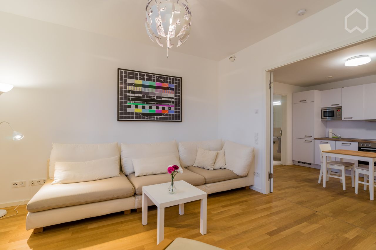 This stylish apartment is located in a modern new building on a quiet side street off Schönhauser Allee - right in the vibrant heart of Berlin, yet pleasantly tucked away. Just a few steps separate you from Mauerpark, countless cafés, restaurants, bars, and a variety of shops. With excellent access to the S-Bahn, U-Bahn, and tram, you can move easily throughout the entire city while enjoying the lively, neighborhood feel of Prenzlauer Berg. One of the apartment’s highlights is its private terra...