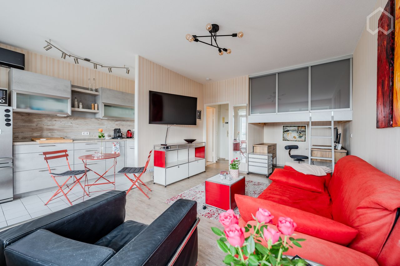 Stylish, air-conditioned apartment with home office and balcony offering panoramic views over Berlin-Mitte