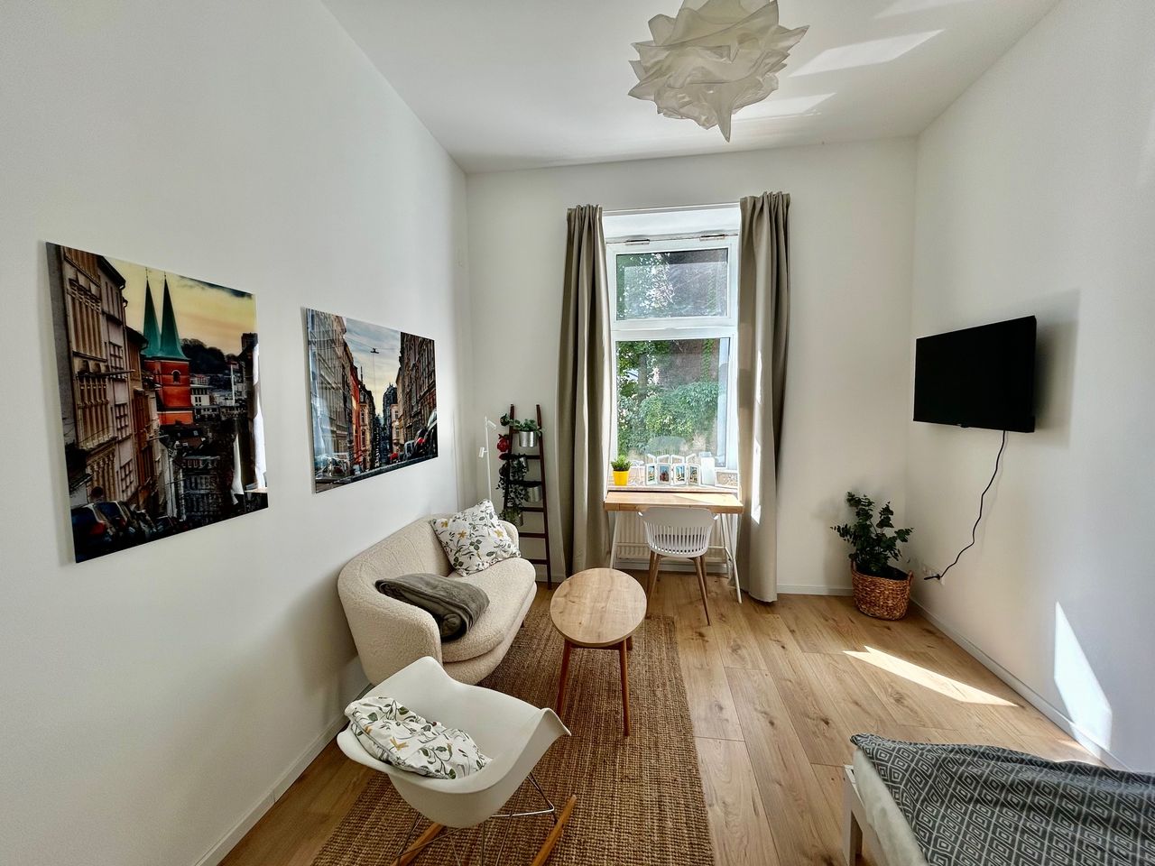 Welcome to the newly renovated, stylishly furnished 32 m² apartment – located right in the heart of the charming Luisenviertel, the cultural center of Wuppertal. Surrounded by cafés, bars, restaurants, and unique shops, you’ll enjoy vibrant city life – yet live in a quiet environment. The apartment sits slightly elevated on a calm one-way street, so you get all the atmosphere without the noise. It is fully furnished and equipped to a high standard. The location is unbeatable: within just a 1-m...