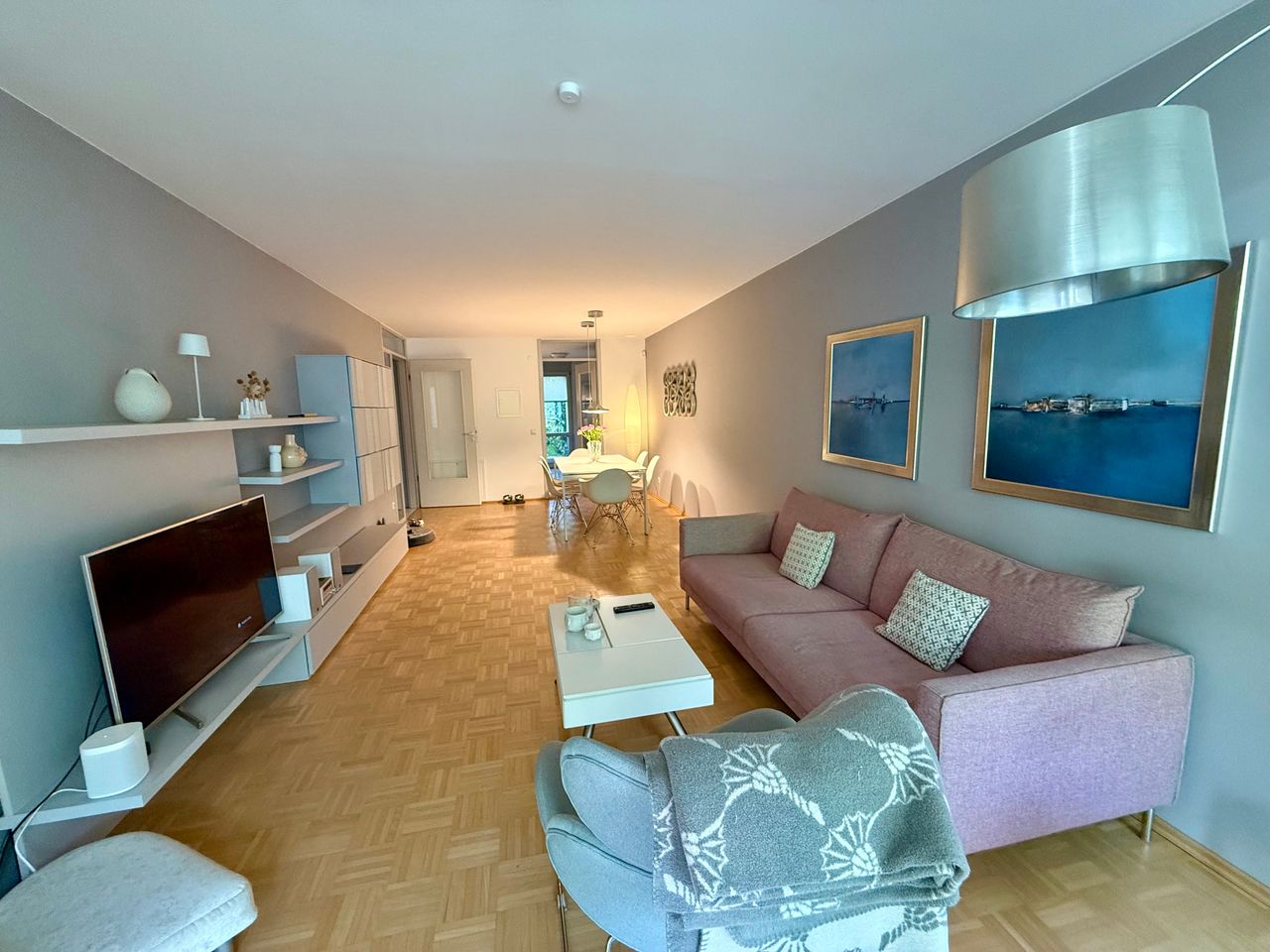 This beautifully bright and fully furnished 4-room apartment offers approximately 107 m² of living space and is situated on the elevated ground floor of a modern residential complex in Karlsruhe’s Südweststadt district. Designed with both comfort and elegance in mind, the apartment features high-end finishes and the rare advantage of two bathrooms—ideal for modern living. The thoughtfully designed layout creates a welcoming and spacious atmosphere. From the entrance, you step into a generous ha...