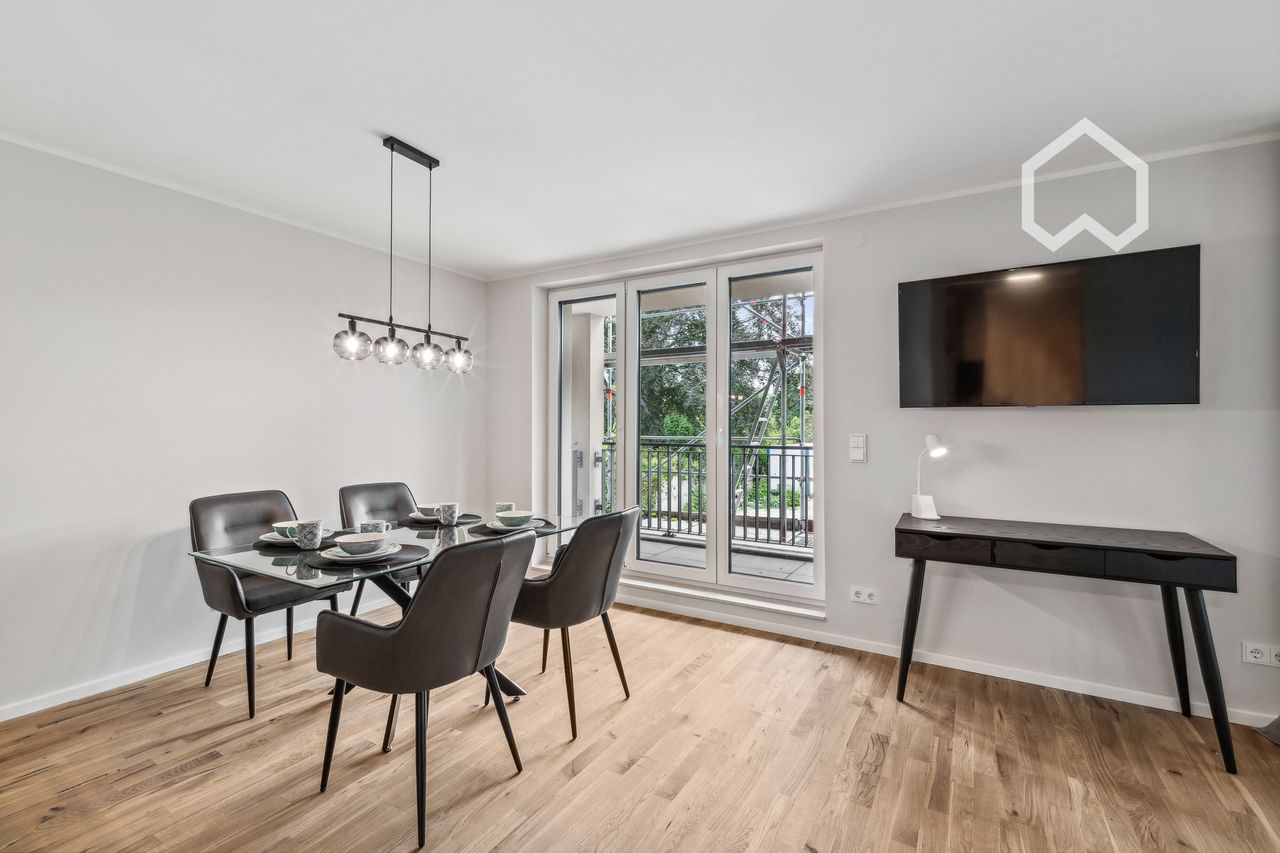 Welcome to your new home in Potsdam – a thoughtfully furnished 1-bedroom apartment offering comfort, elegance, and functionality in equal measure. With its smart layout, modern interior, and curated design elements, this apartment is perfect for professionals, or solo travelers seeking a turnkey living solution. Highlights: - Separate Bedroom with a comfortable bed (120 cm width), curtains, and cozy lighting – your personal retreat. - Open-Plan Living and Dining Area with a sleek corner sofa ...