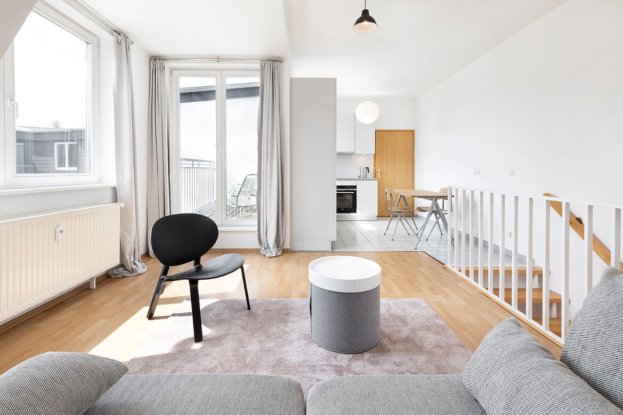 This lovely apartment is located on the 4+5 floor has a very nice layout. Highlight of the apartment is the living room with a terrace and a nice fitted kitchen on the side. The kitchen has all electrodomestics (including dishwasher). There is a washing machine. Includes internet Equipment/Features: - Two room apartment - terrace - Fully equiped kitchen with dishwasher - Washing machine - Internet - Roof top apartment - Central location in Friedrichshain Supermarkets and public transportation n...