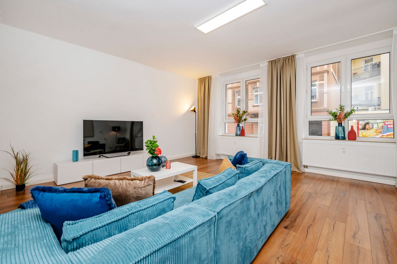 Welcome to your new home! This charming 2,5 room first floor apartment is located in prime location in the trendy district of Pempelfort, centrally located but quiet and bypassed by restaurants, cafes and stores of daily needs. To the Rhein or Kö it is only 15 minutes walk, to the fair, train station or airport only 10 -15 minutes drive each. The apartment offers with its total area of 78sqm the perfect space for singles, couples or commuters. The spacious living area with about 40sqm and a 65" ...