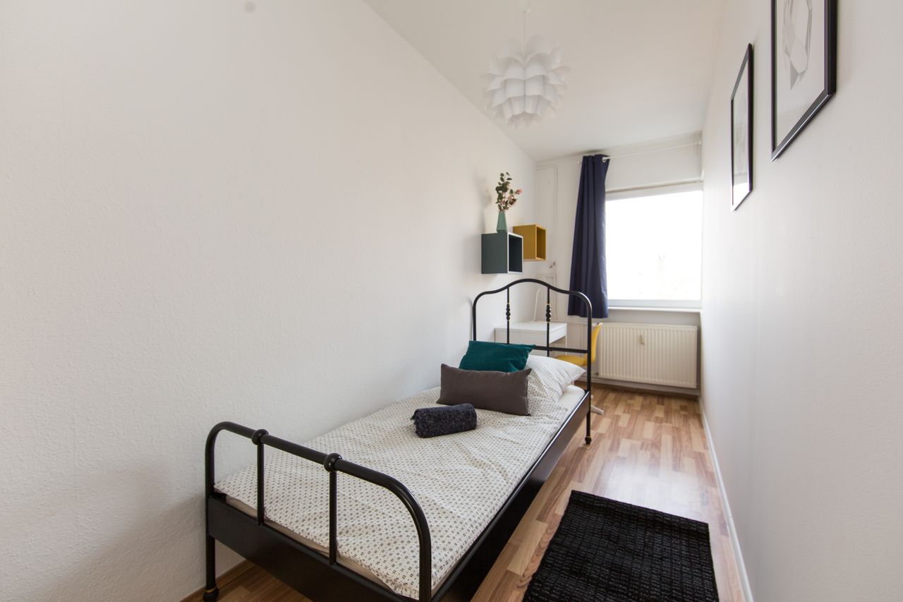 This fully furnished room offers everything you need for a comfortable stay, including a cozy bed, a desk with chair, and a spacious wardrobe. The shared areas feature a fully equipped kitchen, a washing machine, and all essential everyday amenities. 📍 Registration (Anmeldung) is possible 💰 The rent is all-inclusive, covering utilities such as heating, water, internet, and GEZ 📅 Move-in is available on weekdays between 10:00 AM and 3:00 PM. If your contract starts on a weekend, move-in will...