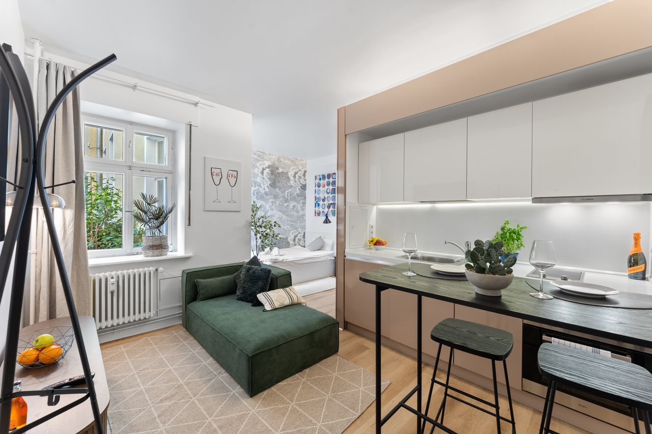 An opportunity to make this modern place your home! The five-storey house was built around 1910 and modified and refurbished to our standards in 2017. There are 25 one- and two-bedroom flats in the house. Each flat has design furniture and numerous technical extras, including Wi-Fi with high-speed internet, HD TV, Bluetooth sound system and heating automation. A common room with a kitchen, table and an idyllic courtyard is available for the community. Facilities Furnished single flats with indiv...