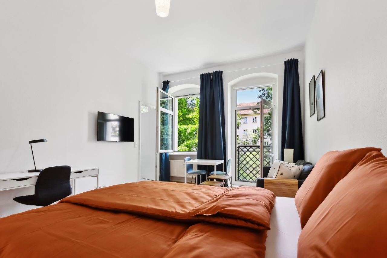 This flat has been personally verified and is managed directly by the Wunderflats Plus team. Welcome to your new home! This flat offers the perfect retreat for discerning singles or couples who want to enjoy the vibrant life of Berlin without sacrificing peace and comfort. The flat extends over 33 square metres and is furnished to a high standard. The bright and inviting living room has a cosy sofa area with integrated flatscreen TV, perfect for relaxing evenings for two or alone. The adjoinin...
