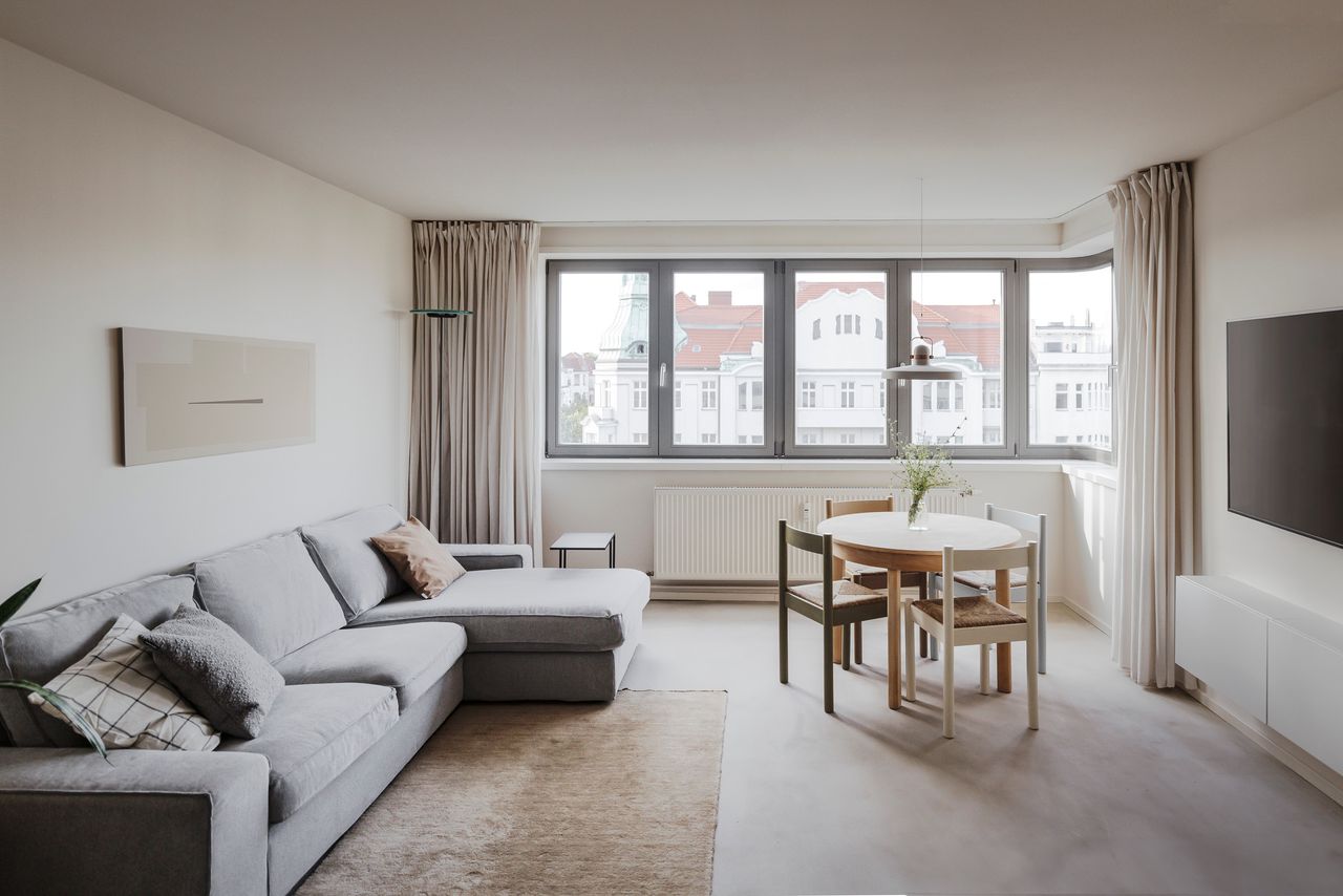 **APARTMENT** The spacious living, kitchen, and dining area extends over approximately 30 square meters and opens up to a northwest-facing window facade. The kitchen is fully equipped and offers plenty of workspace through a half-height kitchen island – perfect for cooking and working at a high table. A compact hallway connects all rooms and the bathroom, providing ample space for a small wardrobe and a storage/utility room with a washing machine. The approximately 15 square meter bedroom feat...