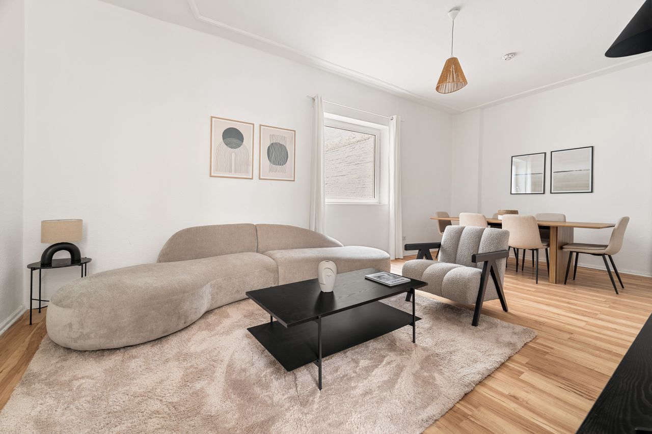 This stunning furnished two bedroom apartment features contemporary design, a fully equipped kitchen, and a cozy living area with breathtaking views. Perfectly situated, you'll have easy access to everything that makes Berlin vibrant and exciting!