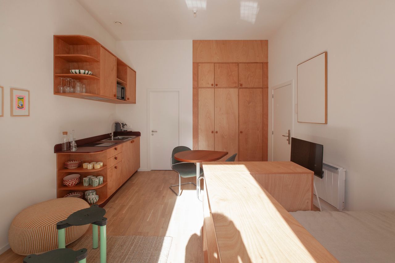 Tucked away on a serene street in the ultra-chic Goulot Louise neighborhood, this studio (2nd floor, no elevator) is a self-contained oasis with its kitchen, living room, dining nook, bedroom and bathroom. You also have access to top-tier communal spaces, including a huge kitchen, dining room, a garden, a fitness and yoga room. Set in one of Brussels’ most coveted districts, you’ll be steps away from designer boutiques, gourmet restaurants, and the buzzing energy of Avenue Louise.