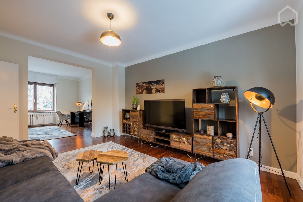 The 2-room apartment is on the upper floor of a semi-detached house in a very quiet residential street in a single-family house area. A 9 m² large, sunny balcony with a view of the garden guarantees carefree summer fun. The garden with old trees invites you to relax and dream. You can go jogging or walking in the nearby castle park. The S-Bahn station Berlin-Biesdorf can be reached in about 5 minutes on foot. The city center can be reached by S-Bahn in 15 minutes. There are shops, restaurants, d...