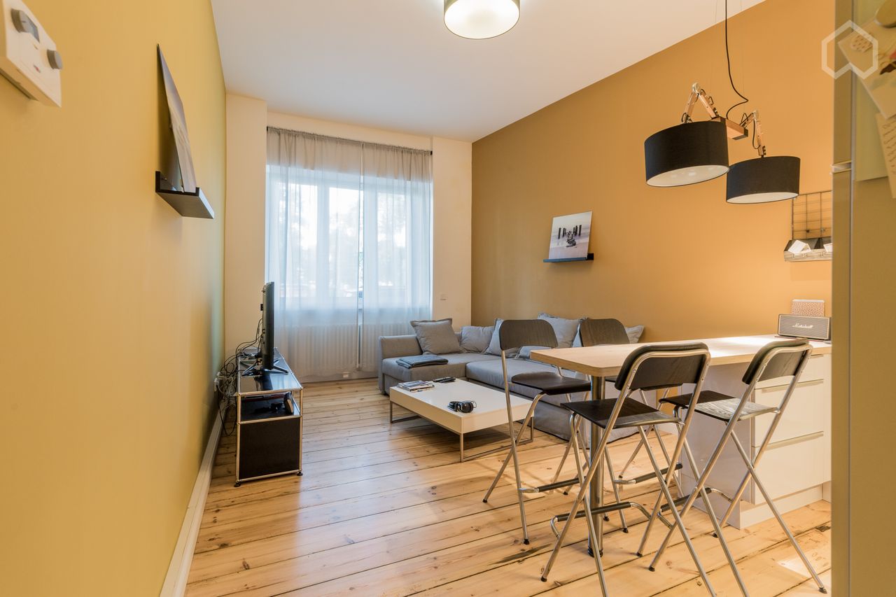 ENGLISH --------------------------------------------- The fully furnished 2-bedroom apartment was refurbished in 2018. High ceilings and original plank floor restored, soft wall colors. It is located directly at the river Spree in the Kaiserin-Augusta-Allee. Quiet and beautiful location of Moabit. All necessities like supermarkets, drug store etc. are within walking distance. The apartment is ideal for people who are in Berlin for business ! - new fitted kitchens with all necessary electrical...