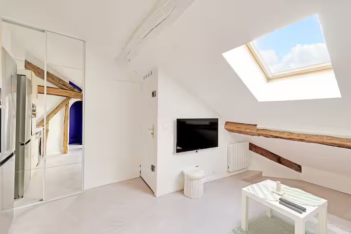 Cozy 15m² Apartment with Mezzanine, Kitchen, and TV
