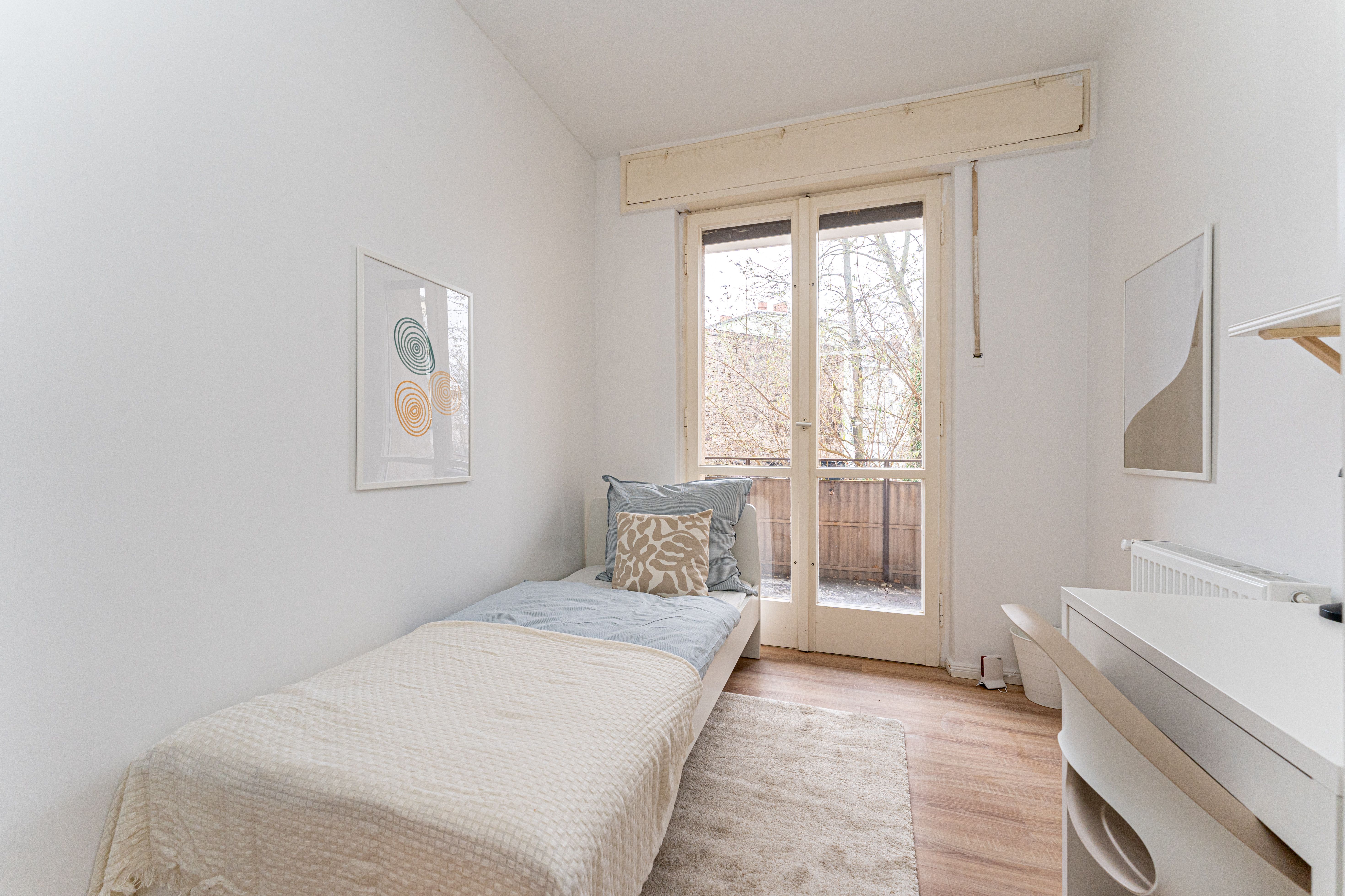 Modernly furnished room in a shared flat, including registration