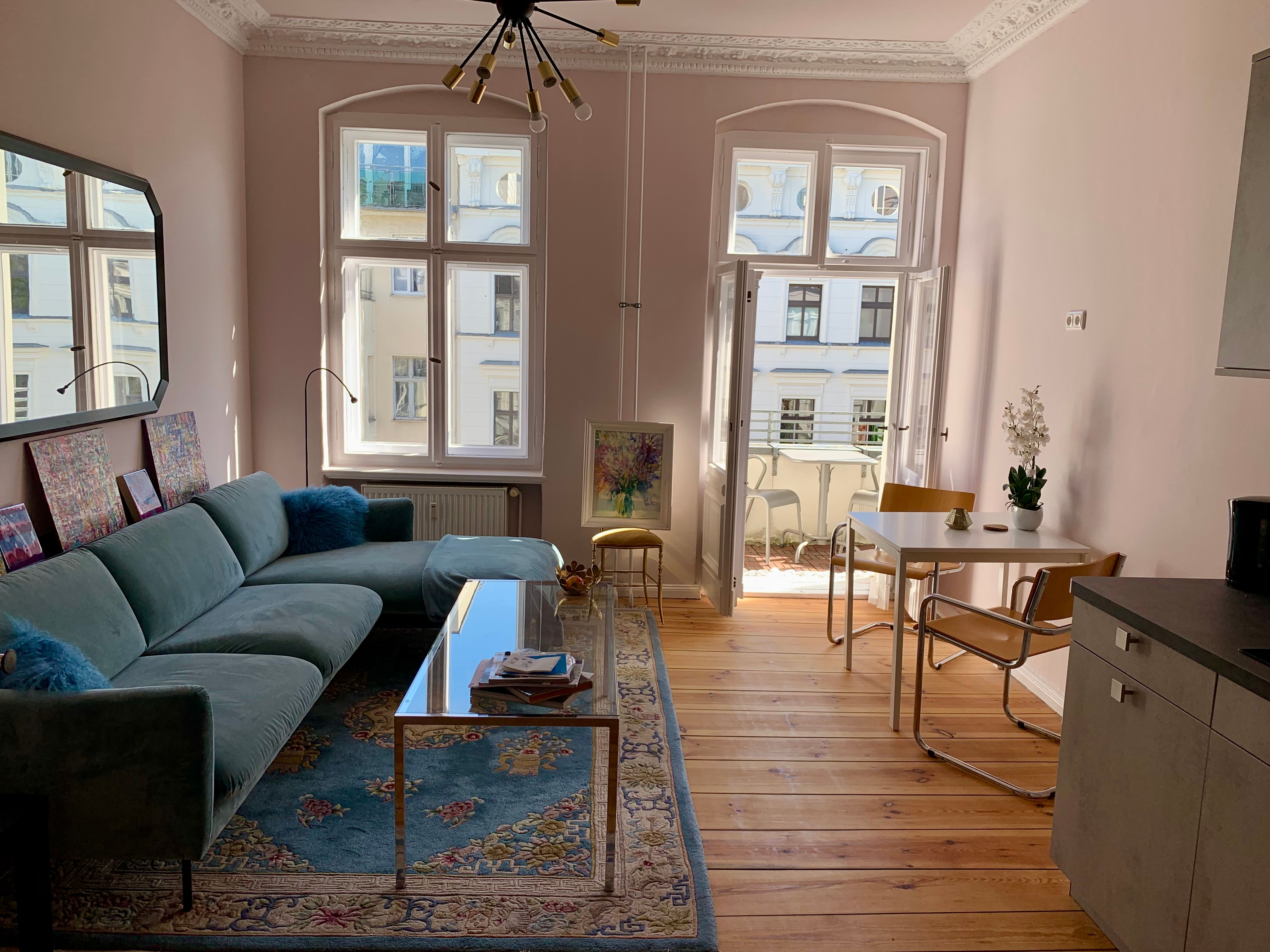 Fully furnished bright & cozy 3-room apartment in Mitte/Prenzlauer Berg with balcony & communal garden. Temporary rent for max. 2 years.