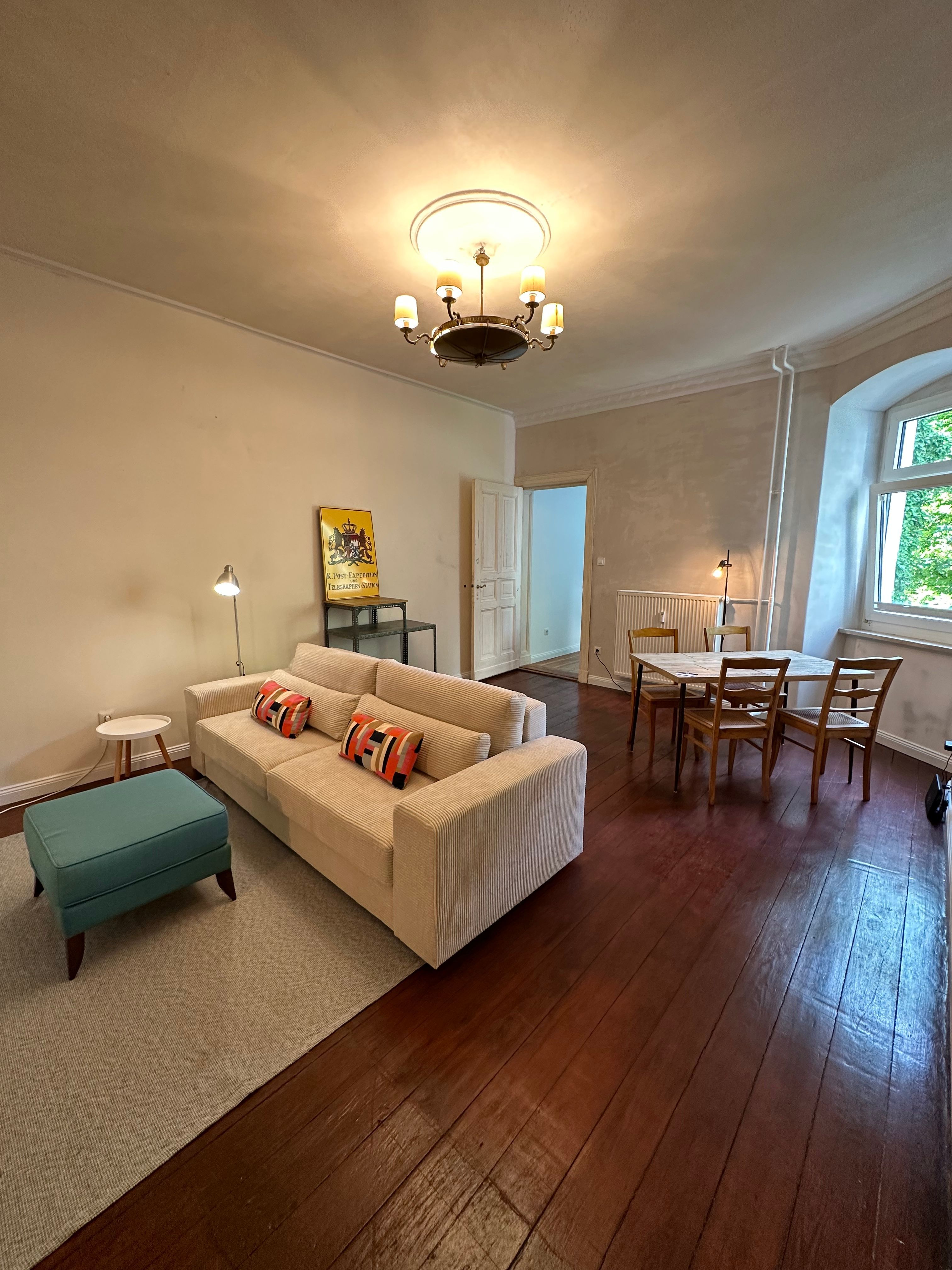 Very well connected, pretty and modern furnished old building apartment in Charlottenburg for up to 6 people.