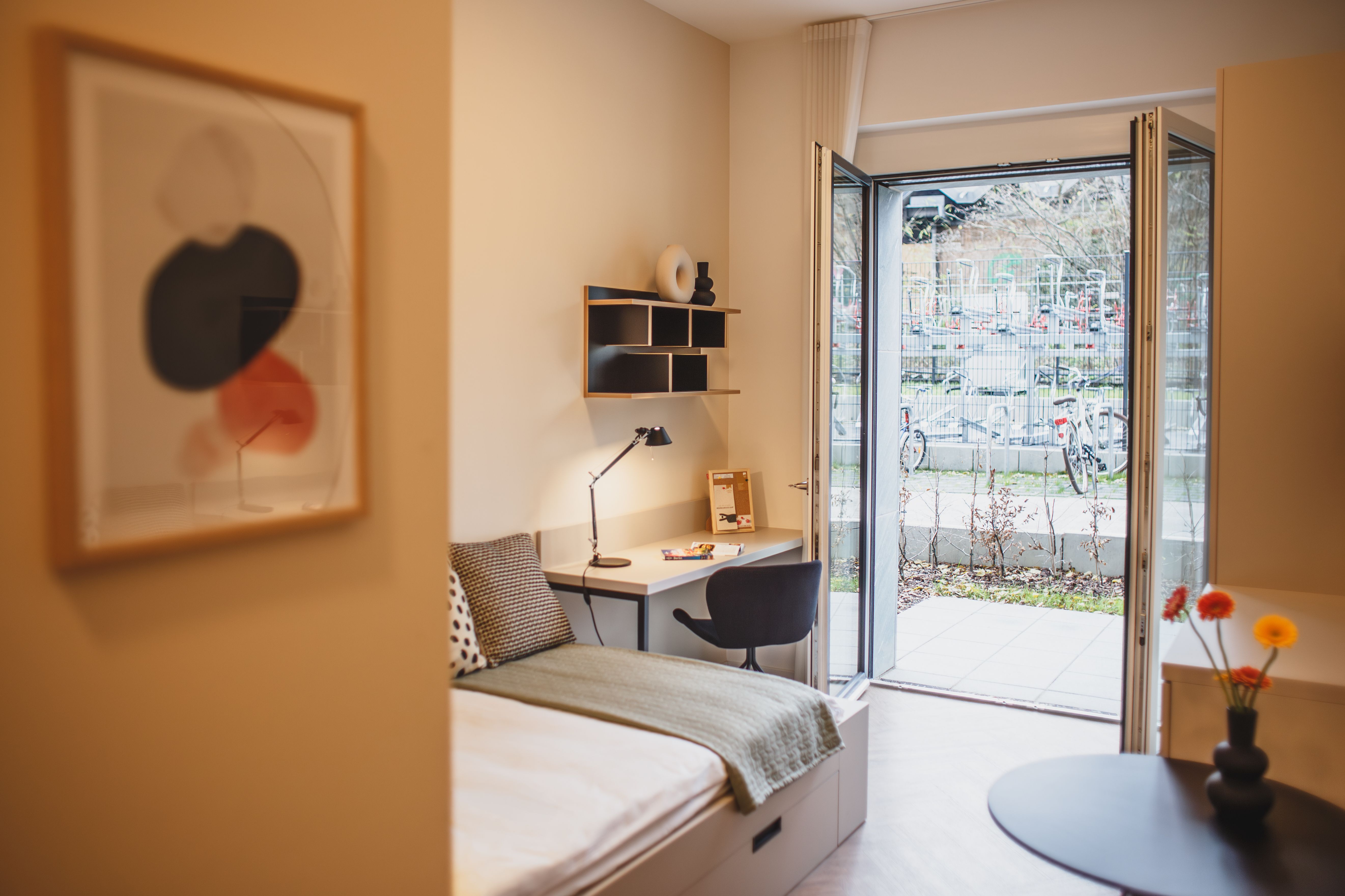 Serviced Studio Apartment with Large Single Bed and Groundfloor Terrace