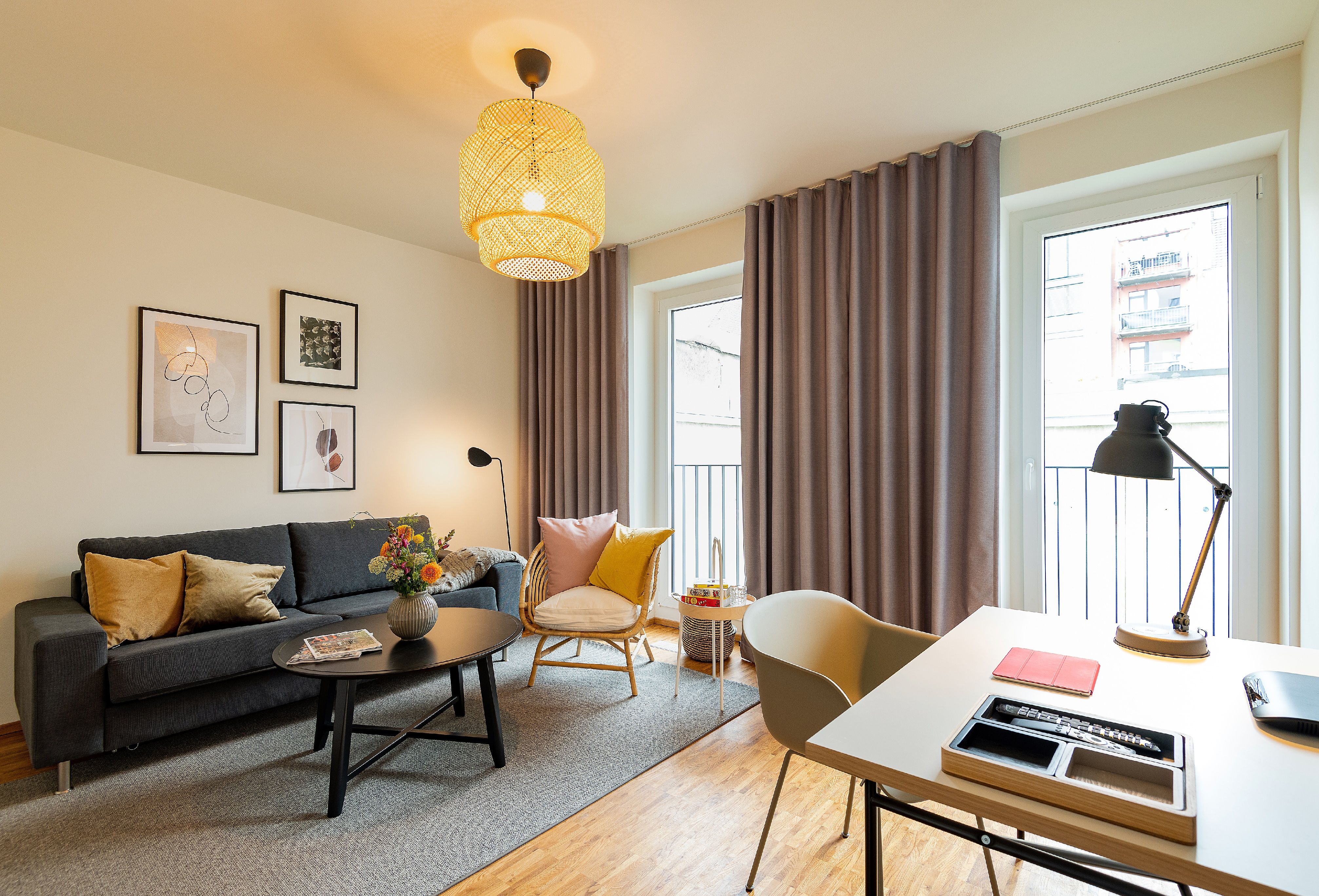 Fantastic, fully furnished apartment with a view of the Rhine in a prime location in Cologne – temporary living on Gustav-Heinemann-Ufer