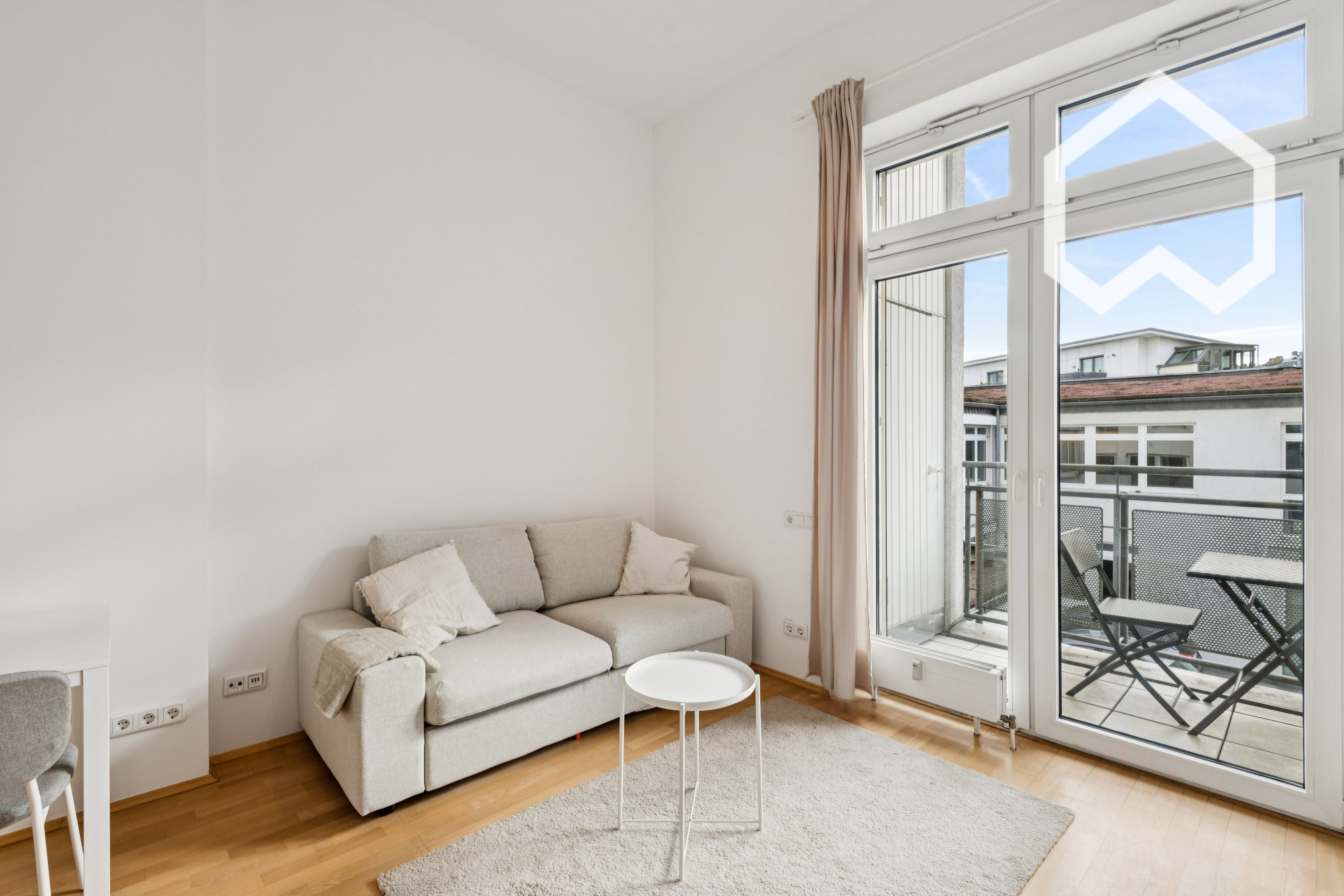 Stylish fully furnished 2-room rooftop apartment with balcony in Düsseldorf city center – ideal for expats & professionals