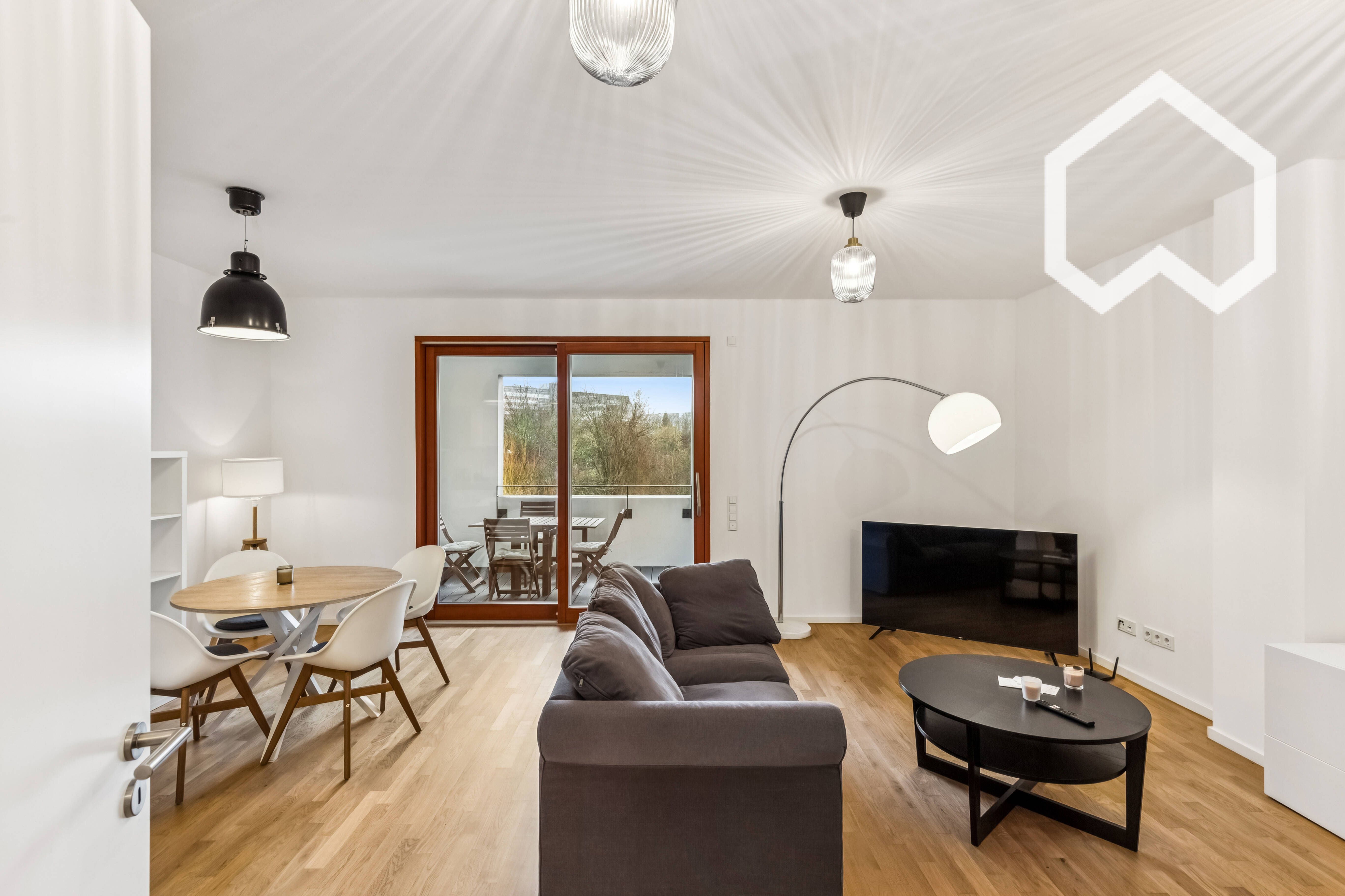 Bright 3 room fully furnished apartment with modern amenities and refreshing outside view of Frankfurt city