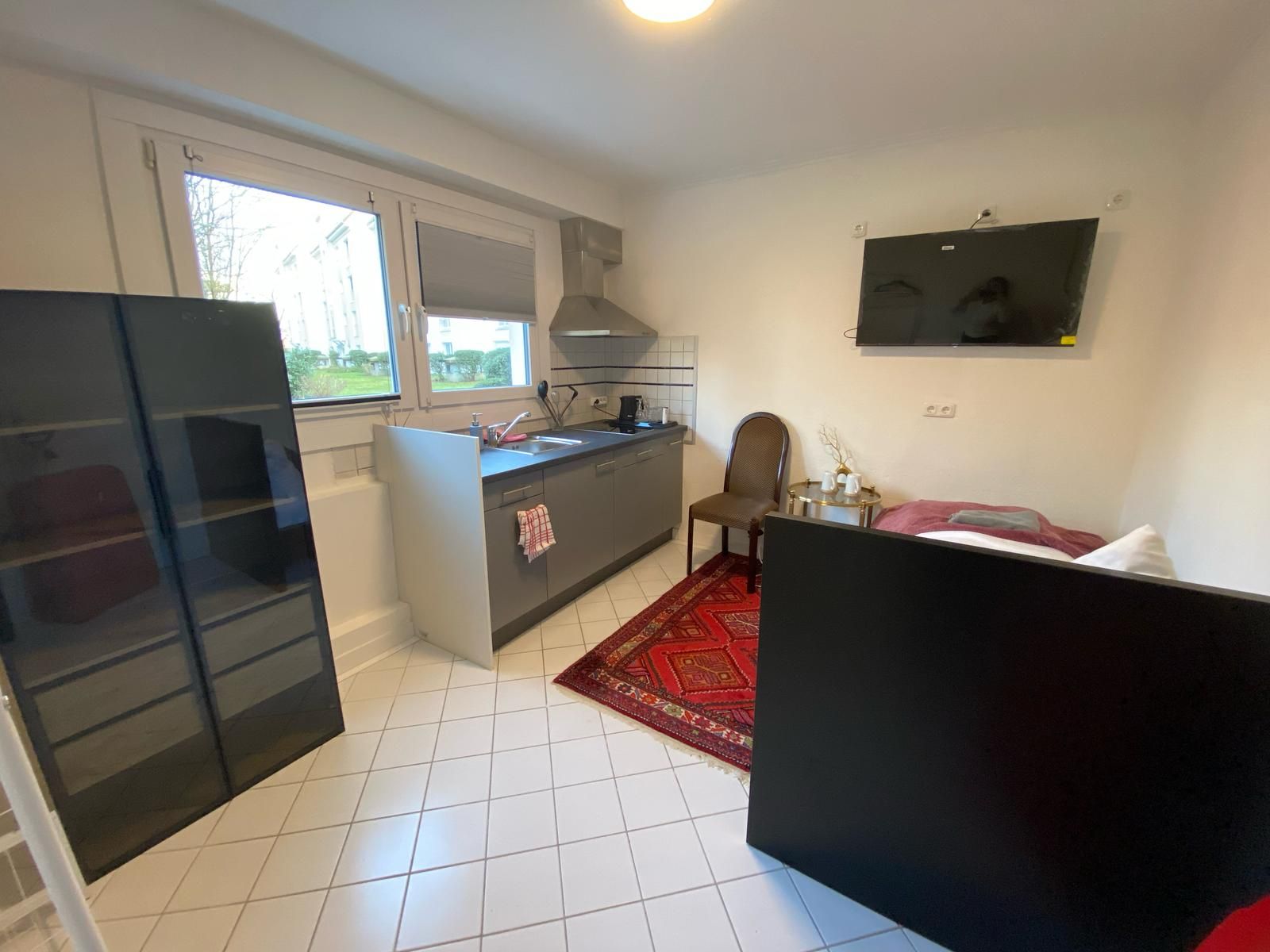 Awesome & lovely suite in Dresden, full furnished with double bed, desk, chairs, wardrobe, kitchenette with sink and fridge,underground parking spot pitch,electricity and TVtv