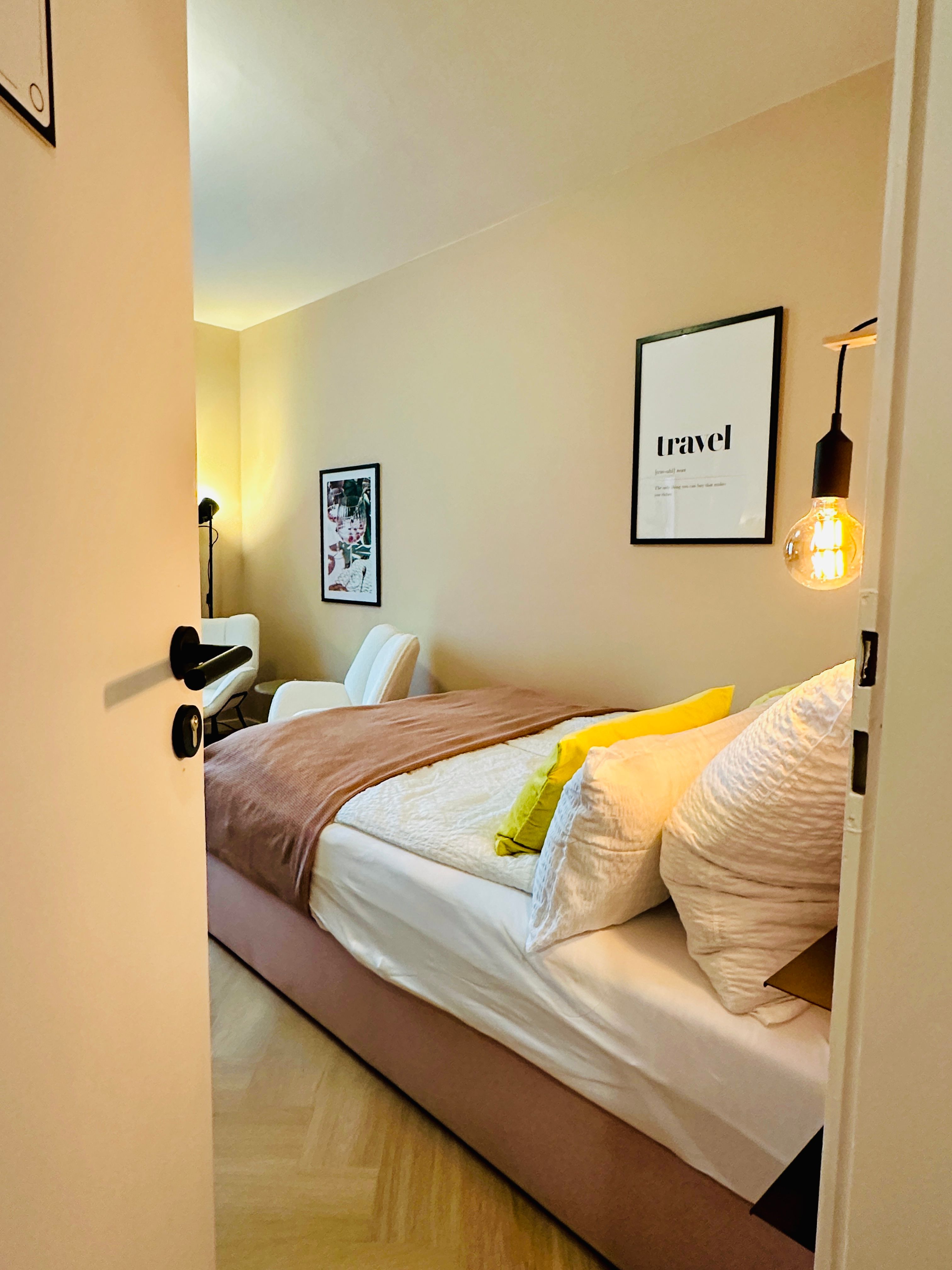 Furnished apartment in Scandinavian style – close to the city center with balcony or garden