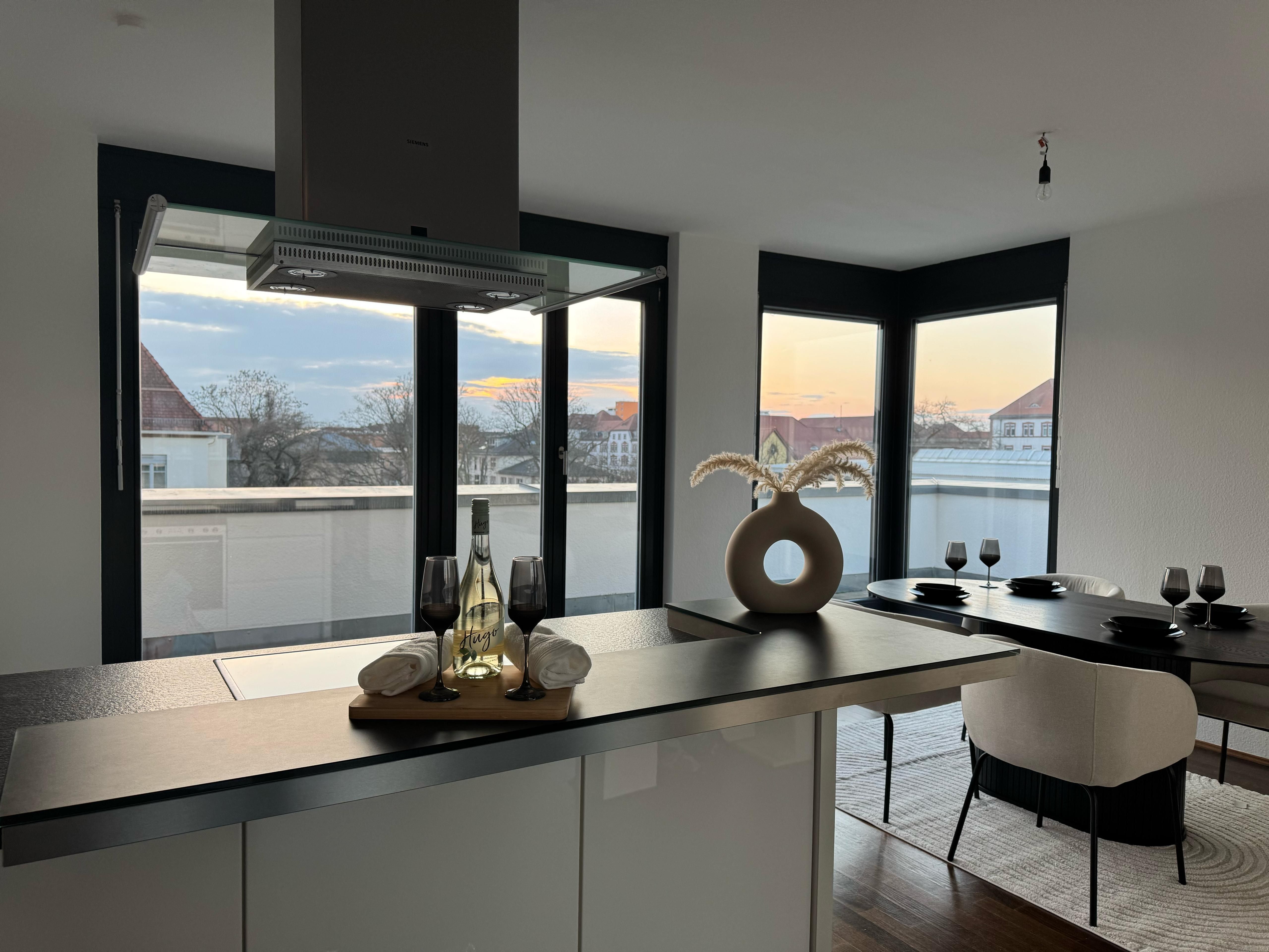 Design 3-Room Apartment ART DECÓ I Terrace I Family-friendly I next to Mercedes & US Army I Kitchen I Home Office