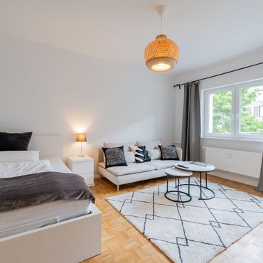 Elegantly furnished apartment with southwest balcony and shared garden terrace