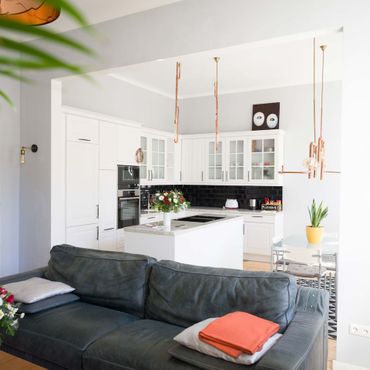 Very modern 4-room apartment with 2 bedrooms and kitchen island in Lichtenberg