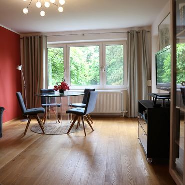 Bright 3 room fully furnished apartment with modern amenities and refreshing outside view of Frankfurt city