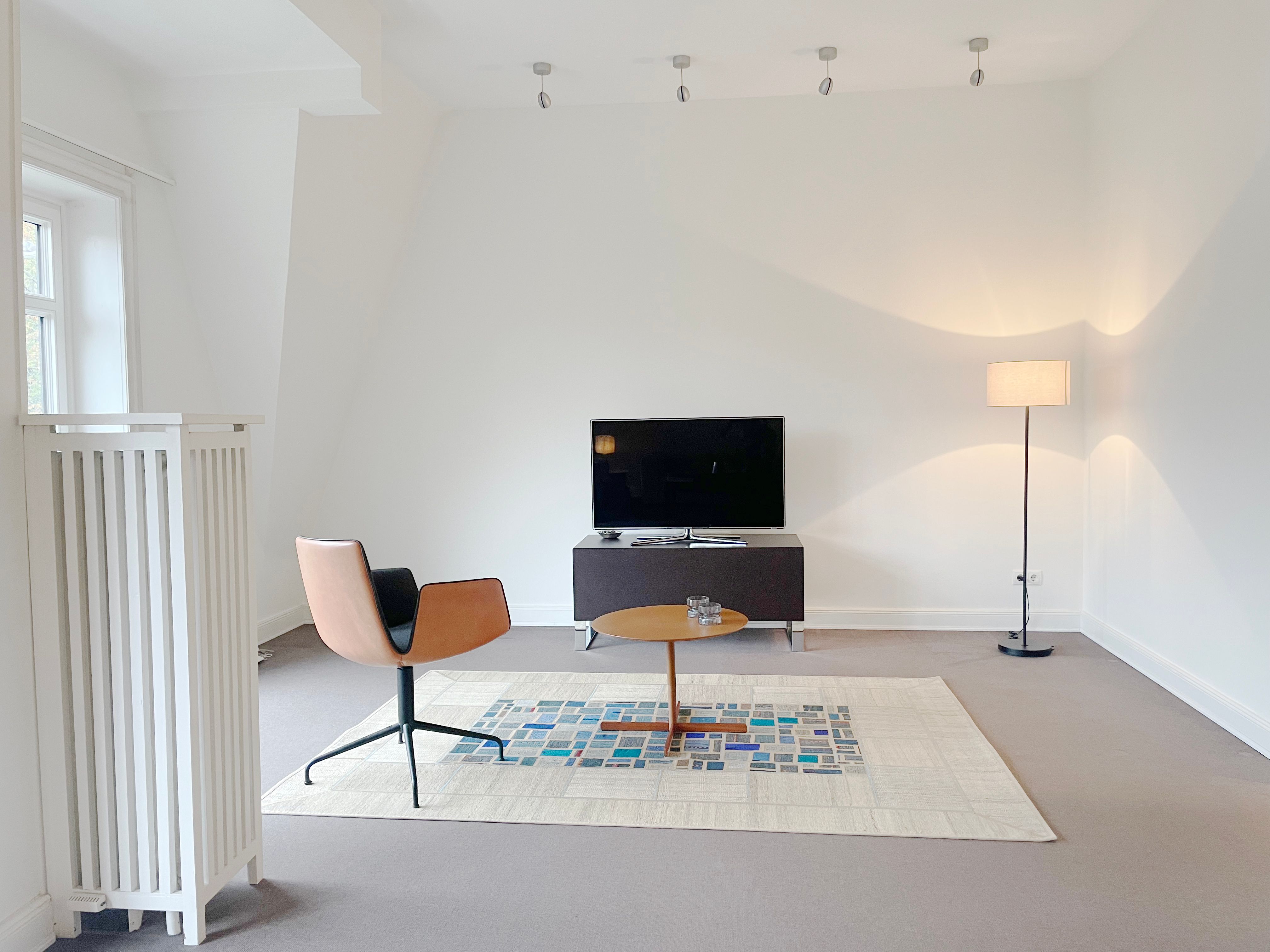 Exceptionally bright and charming Top-Floor Apartment in a Harvestehude Townhouse with balcony – first occupancy following renovation. Fully Furnished & All-Inclusive