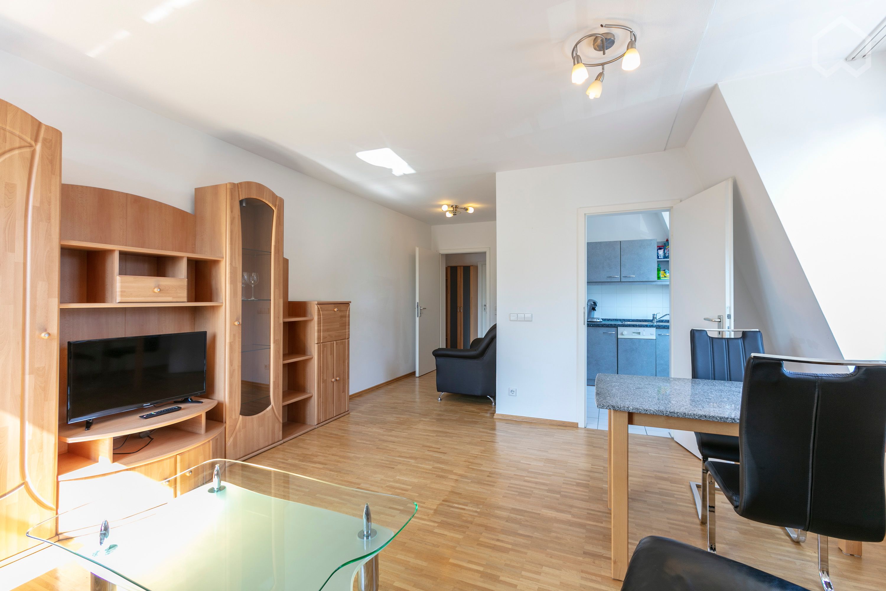 Stylish modern fully-furnished single room apartment with balcony and open kitchen in Neuhausen for 2 tenants