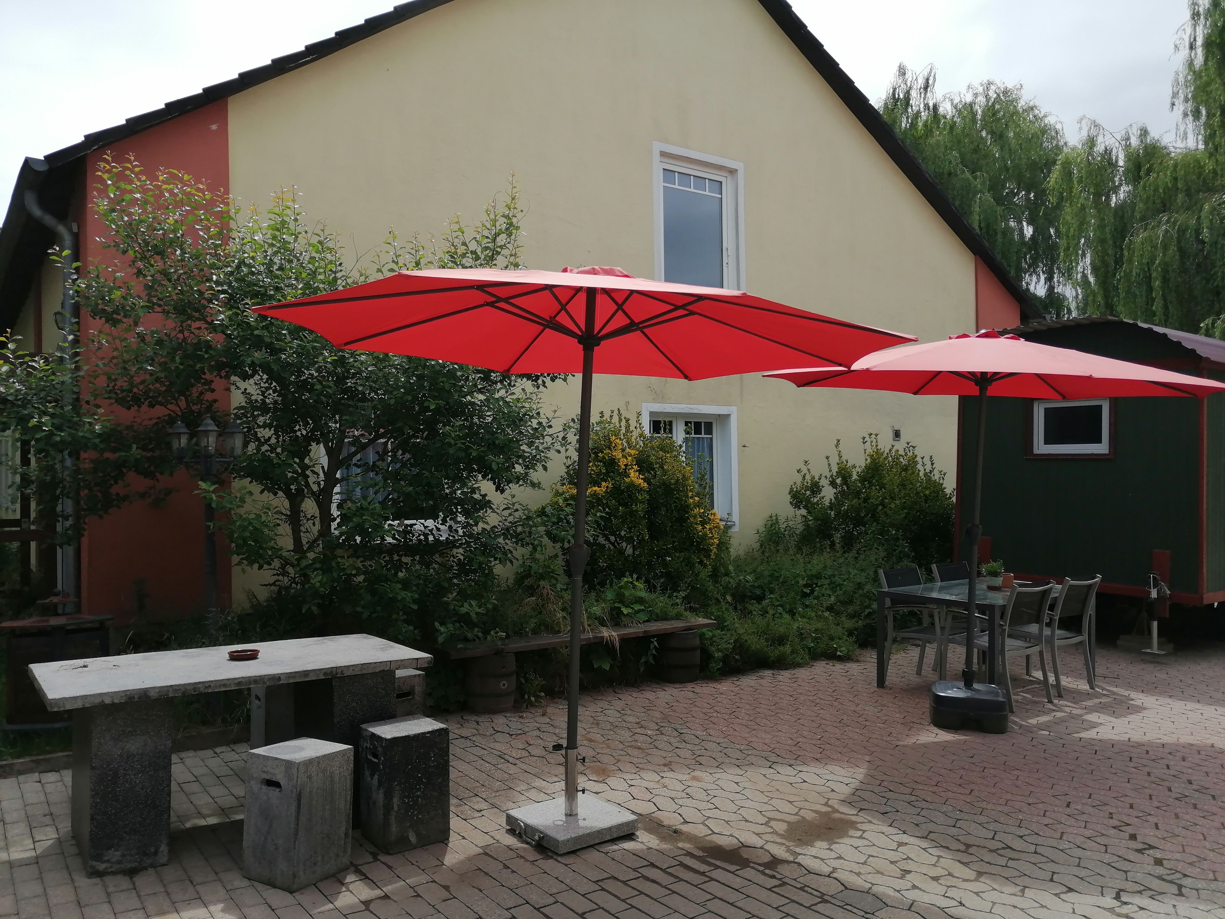 Sunlit apartment near Düsseldorf Airport with parking, supermarket, bakery, and post office in the building.