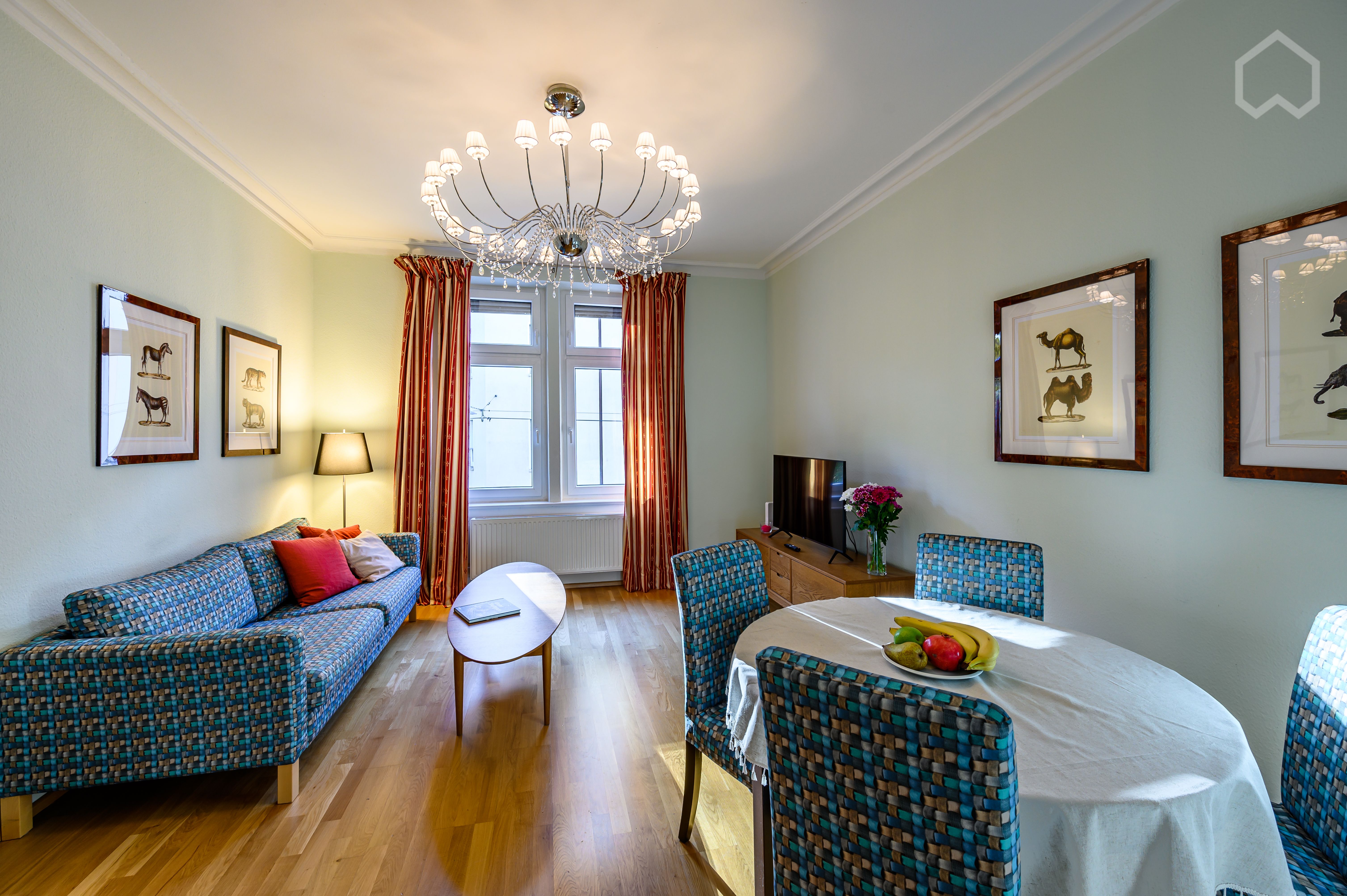 Beautiful furnished 3-room old building apartment (stucco, high ceilings) directly at the Marienplatz
