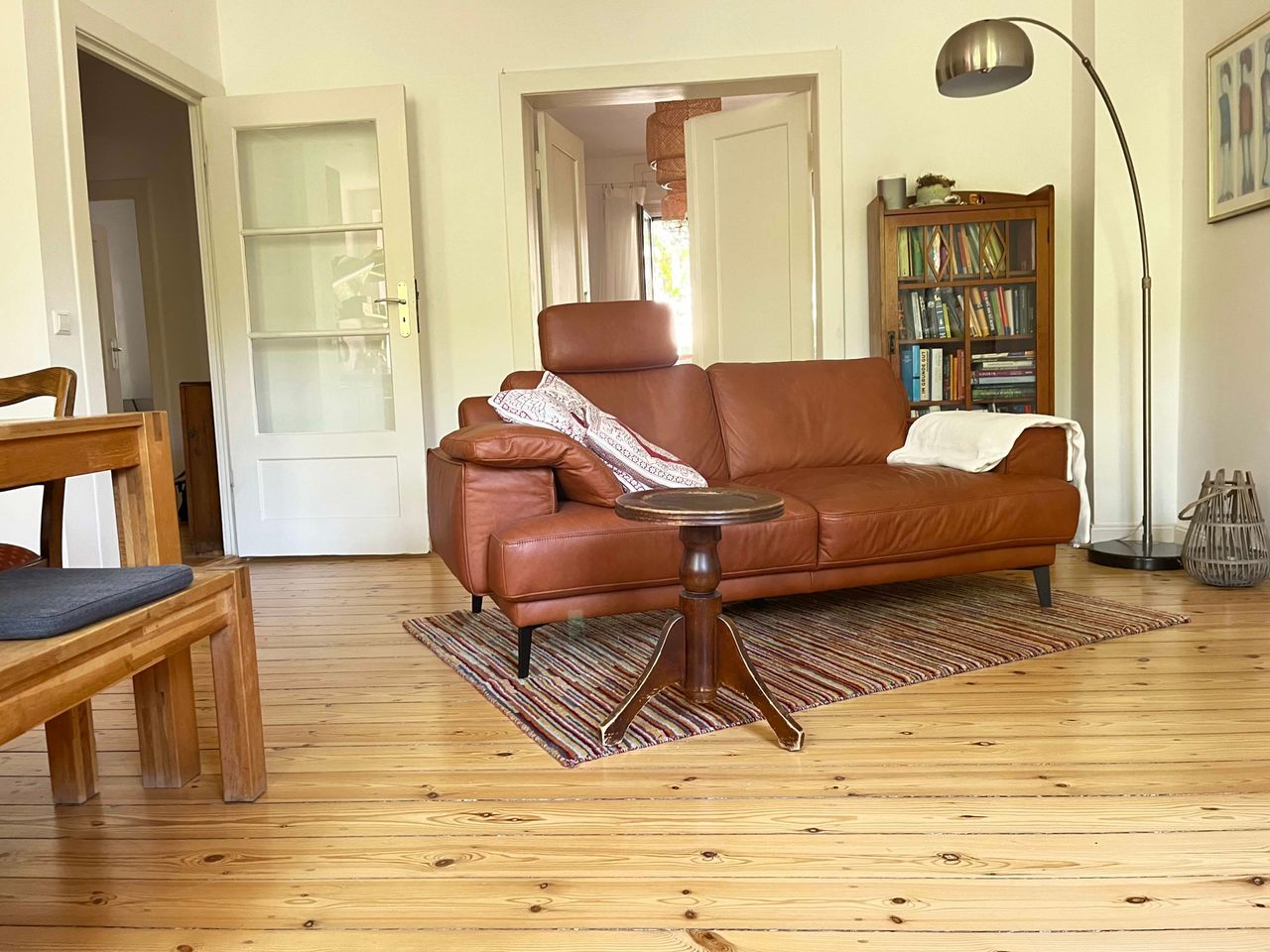 We are renting our lovingly furnished 3-room apartment in Berlin-Karlshorst on a temporary, furnished basis for a maximum of 12 months. The apartment is located on the raised ground floor of Rheingoldstraße, 10318 Berlin, and comprises 81 square meters. It features high-quality Scandinavian-style furnishings. You can expect beautiful wooden floors, an open-plan living and kitchen area, and a covered balcony that offers a pleasant retreat in any season. The apartment includes a high-quality eat...