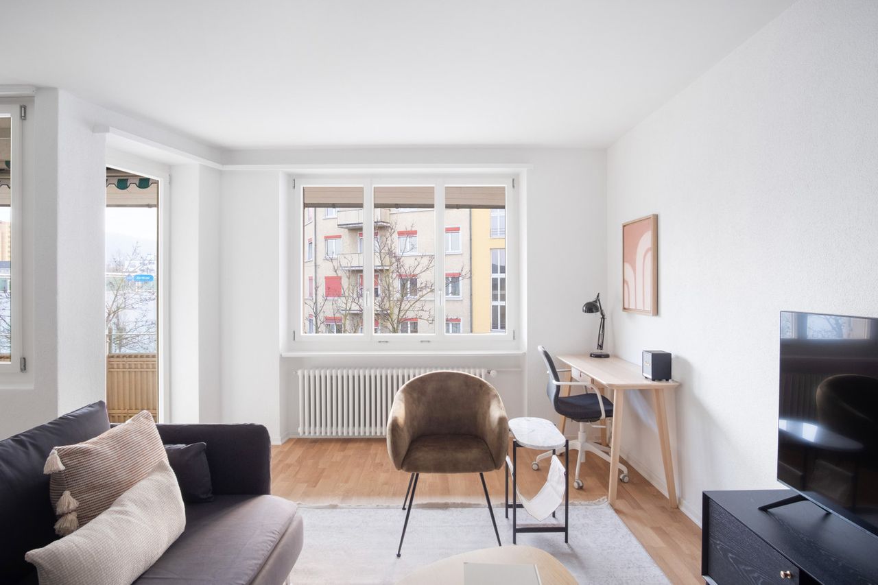 Show up and start living from day one in Zurich with this charming two bedroom apartment. You’ll love coming home to this thoughtfully furnished, beautifully designed, and fully equipped Oerlikon home with stunning balcony views over the city. No setup or furniture costs - save thousands Move-in ready - save time, just bring your suitcase Designed with you in mindGorgeous furniture, fully equipped kitchen, smart TV, and a premium wireless speaker are just a few of the amenities you’ll fi...