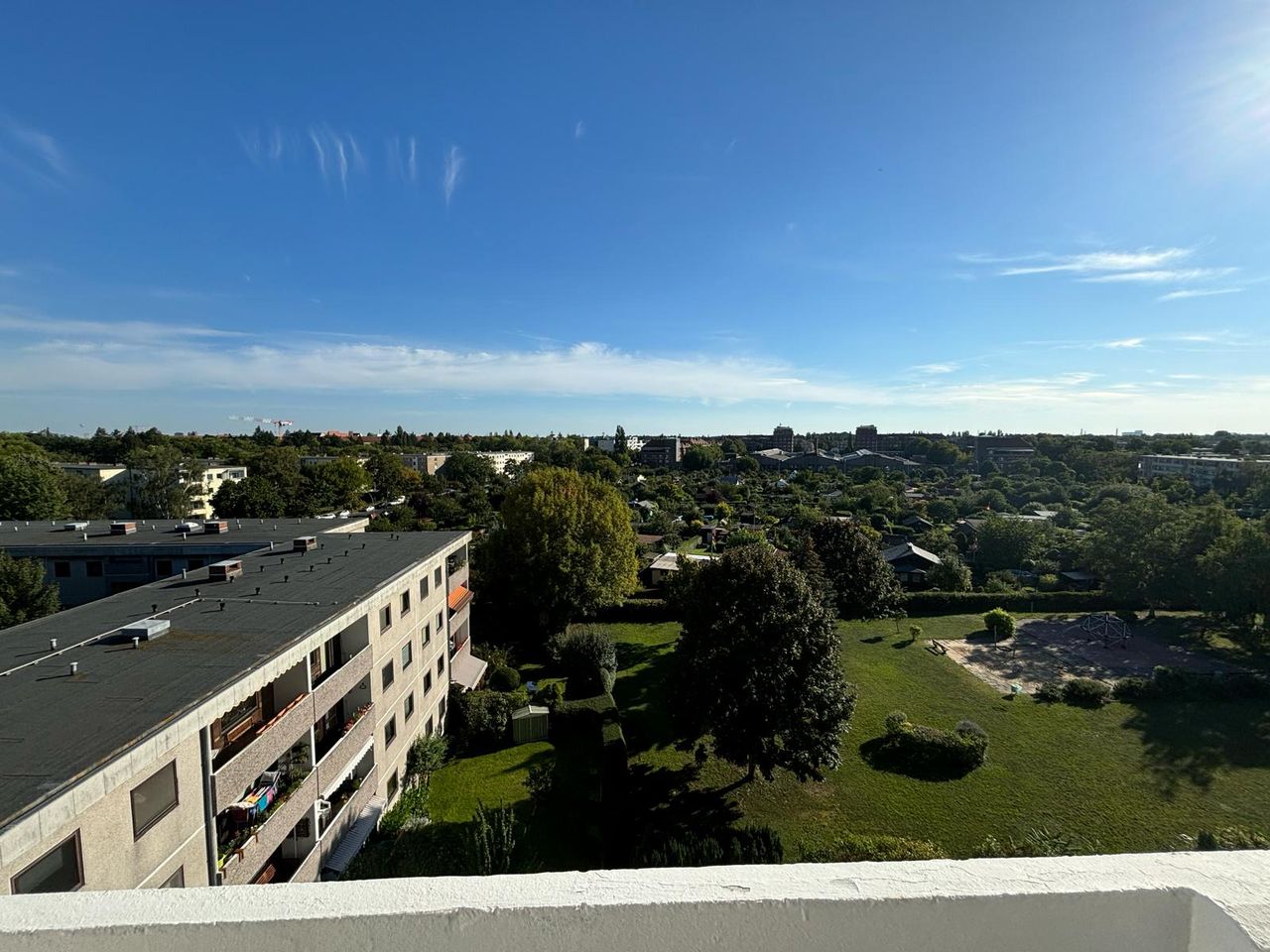 This modern and fully furnished 2‑room apartment on the 5th floor offers a high‑quality interior and a wide panoramic view over Berlin. The bright living room includes a dining area, a comfortable sofa, and the option to prepare an additional 90‑cm bed if required. The quiet bedroom features a high‑quality box‑spring bed and an integrated built‑in wardrobe, providing generous storage space for longer stays. The separate kitchen is fully equipped and suitable for everyday use. The modern bathroo...