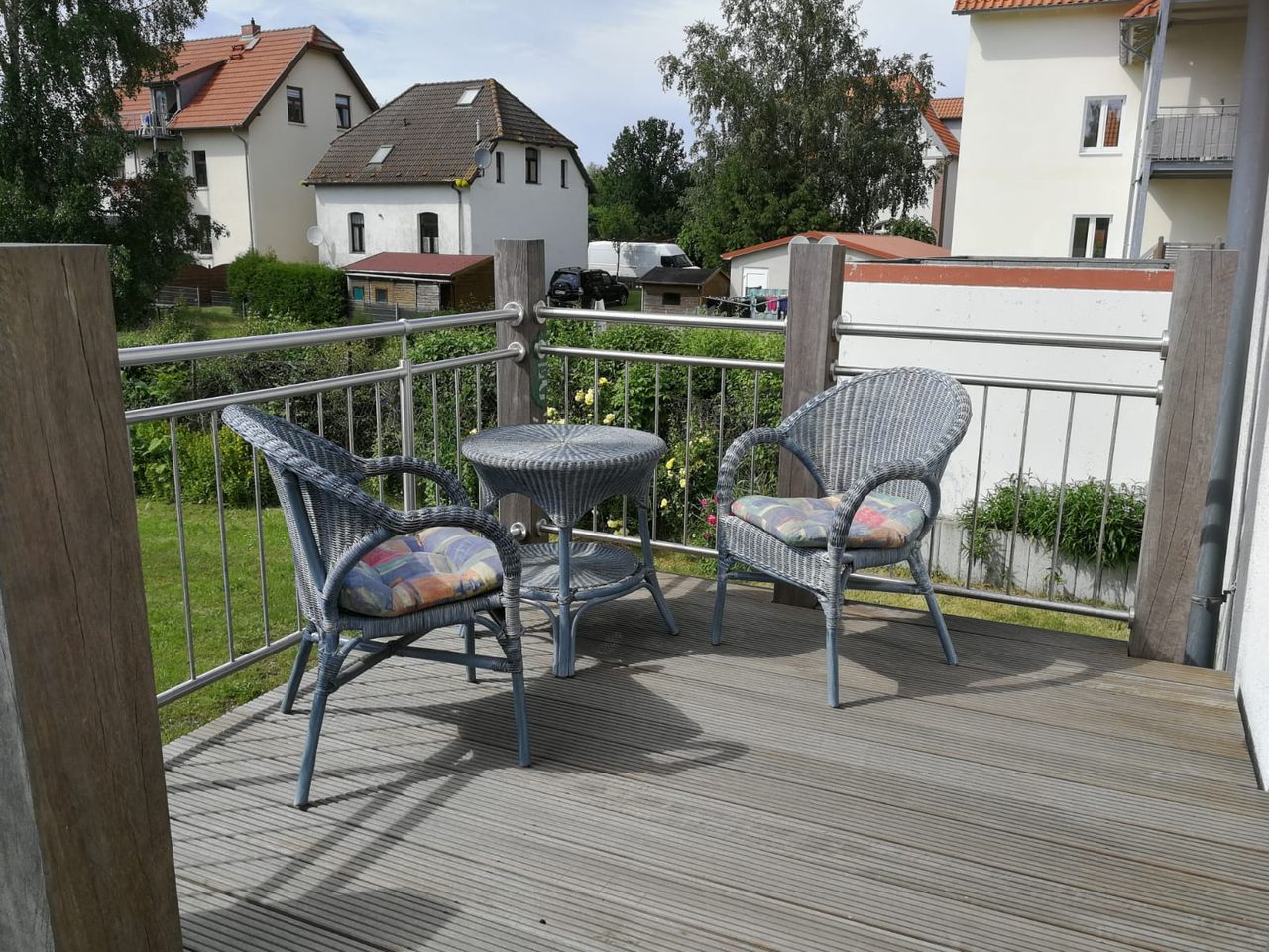Charmante 2-Zimmer-Wohnung mit großer Terrasse in Schlossnähe Die ca. 50 m² große Wohnung bietet ein gemütliches Wohnambiente mit zwei gut geschnittenen Zimmern. Das Schlafzimmer ist mit einem komfortablen Doppelbett ausgestattet, während im Wohnzimmer eine praktische Schlafcouch zusätzlichen Platz für Gäste bietet. Die moderne Einbauküche verfügt über Kühlschrank, Herd und Mikrowelle und ist vollständig ausgestattet. Ein besonderes Highlight ist die großzügige Terrasse, die zum Entspannen im...