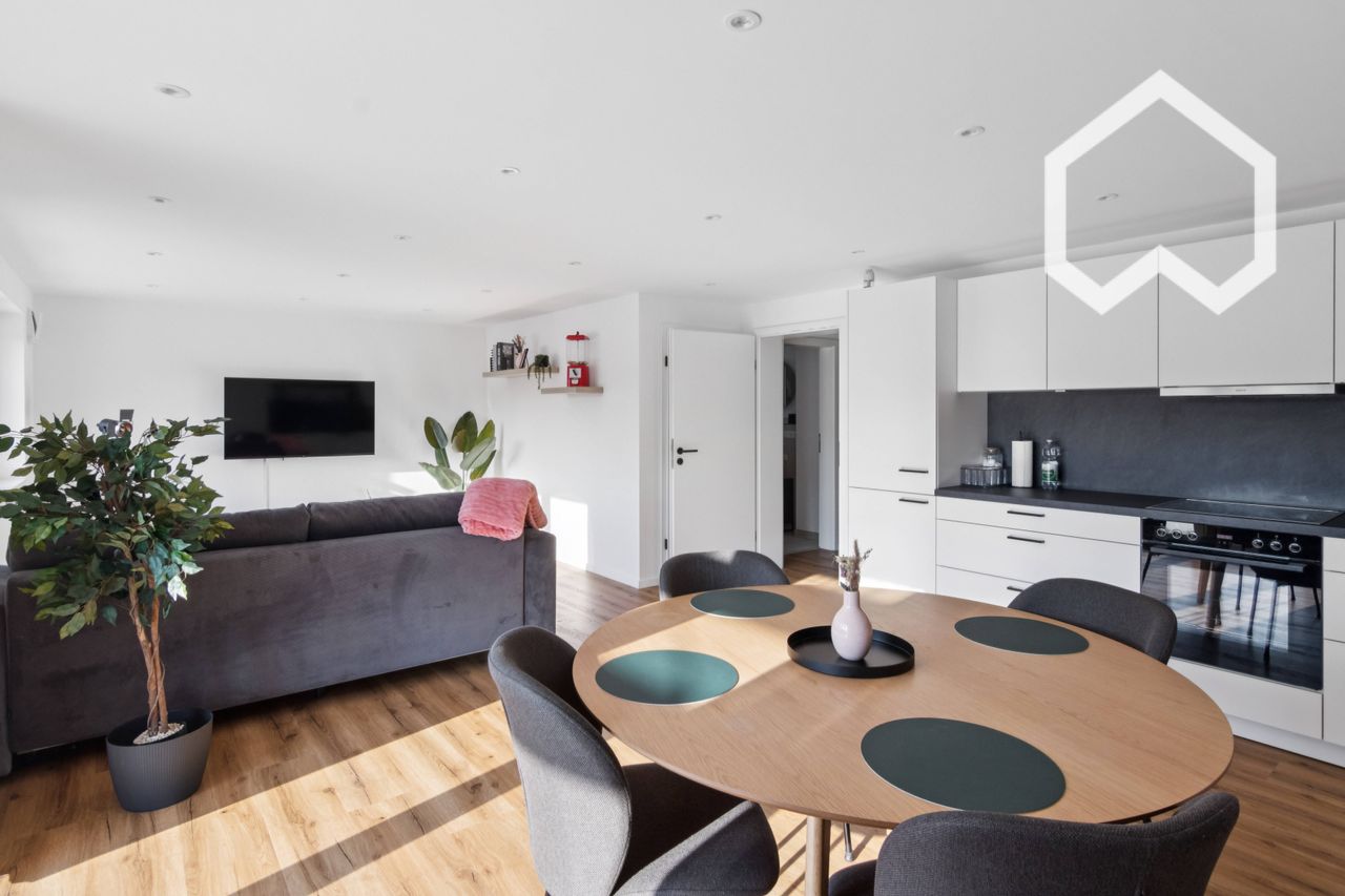 Welcome to our modern and light-filled 3-room new-build apartment in Friesenheim, which can accommodate up to six people. Step inside and immediately feel the relaxed atmosphere created by the generous windows and open-plan living concept. Living & Dining Area: Make yourself comfortable in the cozy living and dining area, where a smart TV provides entertainment and a collection of board and card games ensures enjoyable evenings with the whole family. Kitchen: The modern, fully equipped kitchen...